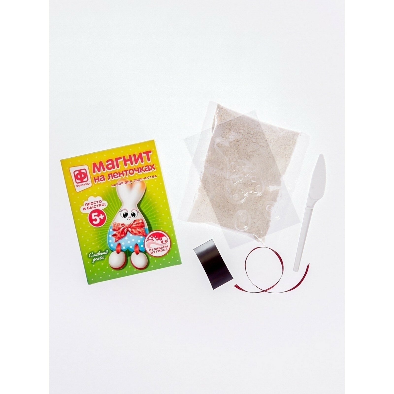 В наборе: гипс, форма для заливки, магнит, пластиковый стек.