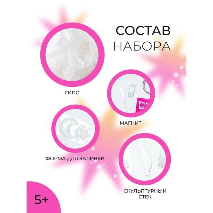 В наборе: гипс, форма для заливки, лента, магнит, пластиковый стек.