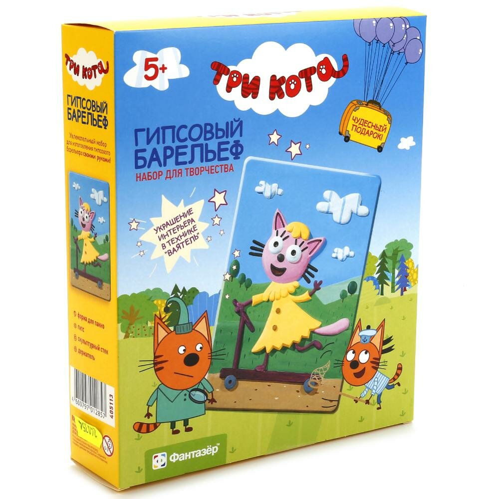 Набор для творчества Три кота Гипсовый барельеф Лапочка Фантазер