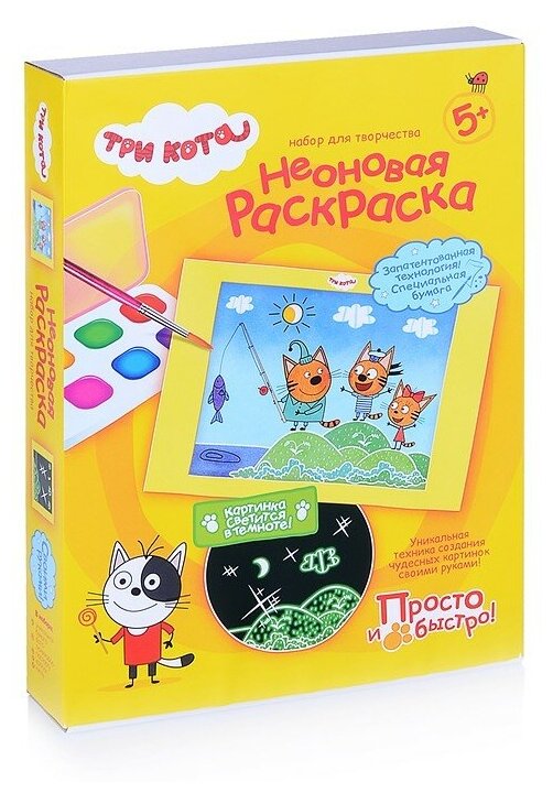 Раскраска неоновая Три кота На рыбалке Фантазер