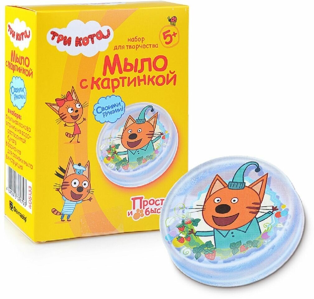 - Мыло своими руками/Компот превратился в мыло?/набор для творчества Три кота Мыло с картинкой