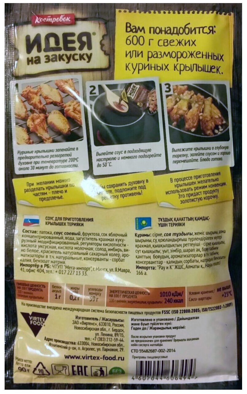 Сервис сравнения цен СкидкаГИД предлагает сравнить цены на товар «Соус Костровок Крылышки терияки 90г Виртекс»