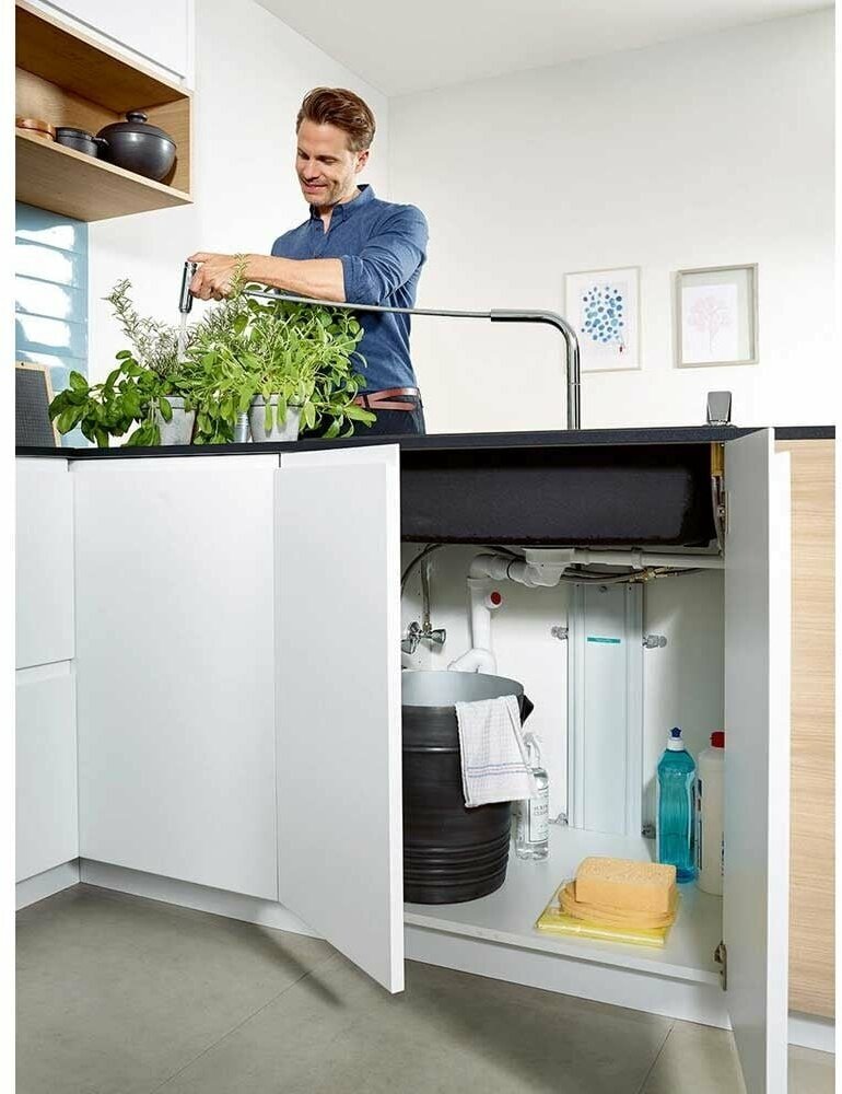 - Короб sBox для тихого, плавного, безопасного перемещения шланга в кухонном шкафу, под столешницей.