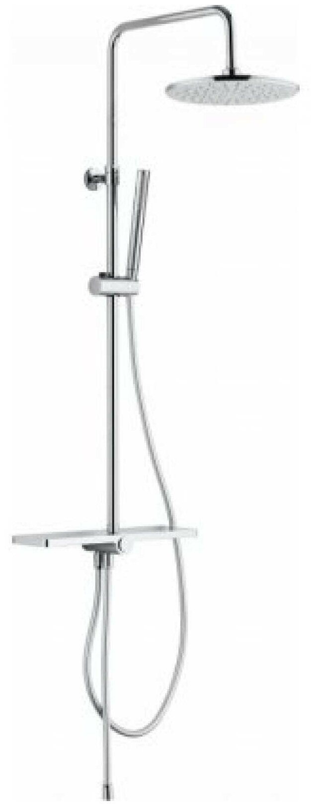 Душевая стойка Aquanet Pragmatic R AF430-70-R-C, с полочкой решит вопрос с оборудованием душевого уголка. Изделие обладает классическим дизайном в стиле модерн и в цветовой гамме хром. Обратите внимание, что управление водой в стойке, и это удобно любителям такого типа смесителей.