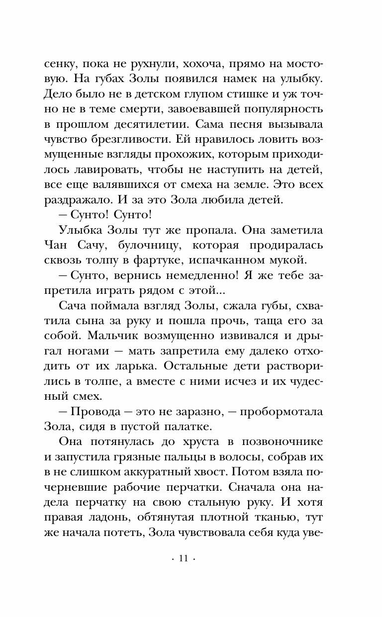 Целые дни шестнадцатилетняя Зола чинит на рынке чужие портскрины и андроиды. Она лучший механик Нового Пекина, и ее слава достигла королевского дворца. Но немногие знают, что они киборг. Давным-давно, после несчастного случая, маленькую Золу спасли, вмонтировав в ее тело металлические части тела и электронную нервную систему. Теперь, едва узнав об этом, люди сторонятся ее, а мачеха с двумя дочками без конца осыпает упреками.