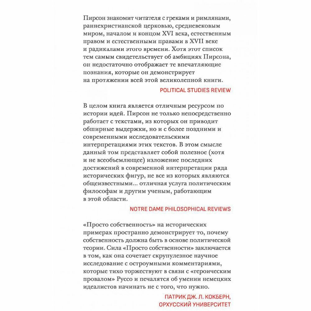 В книге прослеживается развитие идей о собственности на Западе, начиная с XVIII в. через эпоху Просвещения и опыт Французской революции до критической позиции социалистов и анархистов в XIX в. Для ее сторонников частная собственность служит средством обеспечения личной свободы, ограничения авторитарных правительств, развития наук и искусств и беспрецедентного улучшения материального положения населения. Для ее критиков частная собственность - важнейшая составляющая новой политической экономии системной и неограниченной классовой эксплуатации. Она пронизывает и развращает все, к чему прикасается. Эти новые аргументы и контраргументы характерны для эпохи Нового времени, и они продолжают оставаться актуальными и сегодня.