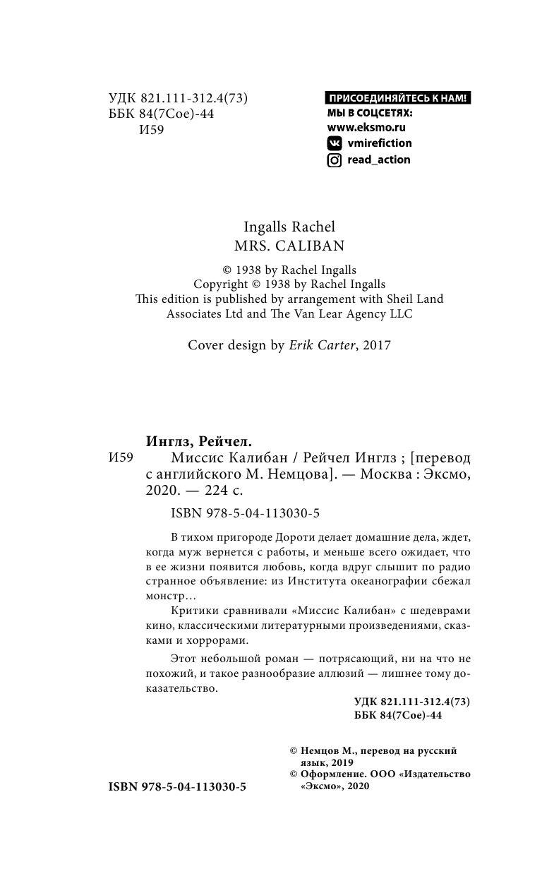Книга: Миссис Калибан (Рейчел Инглз); Эксмо, Inspiria, Редакция 1, 2020