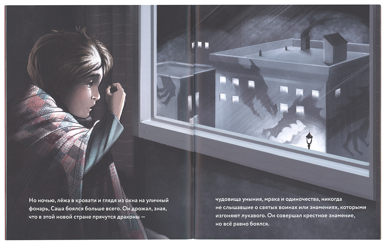 В большом чужом городе Саша чувствует себя потерянным и одиноким. Дети издеваются над ним. А любимая бабушка тихо умирает в соседней комнате. Ужасный дракон страха и тьмы преследует мальчика. Но в ответ на горячую молитву Саши сам Архангел Михаил является и поражает дракона. Так Саша обретает радость непоколебимой веры, которая прогоняет страх и освещает жизнь.