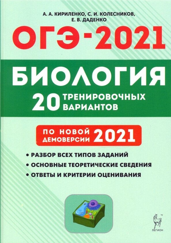 ОГЭ 2021 Биология 9кл [20 тренир. вариантов] (Кириленко Анастасия Анатольевна, Колесников Сергей Ильич, Даденко Евгения Валерьевна); Легион, 2020
