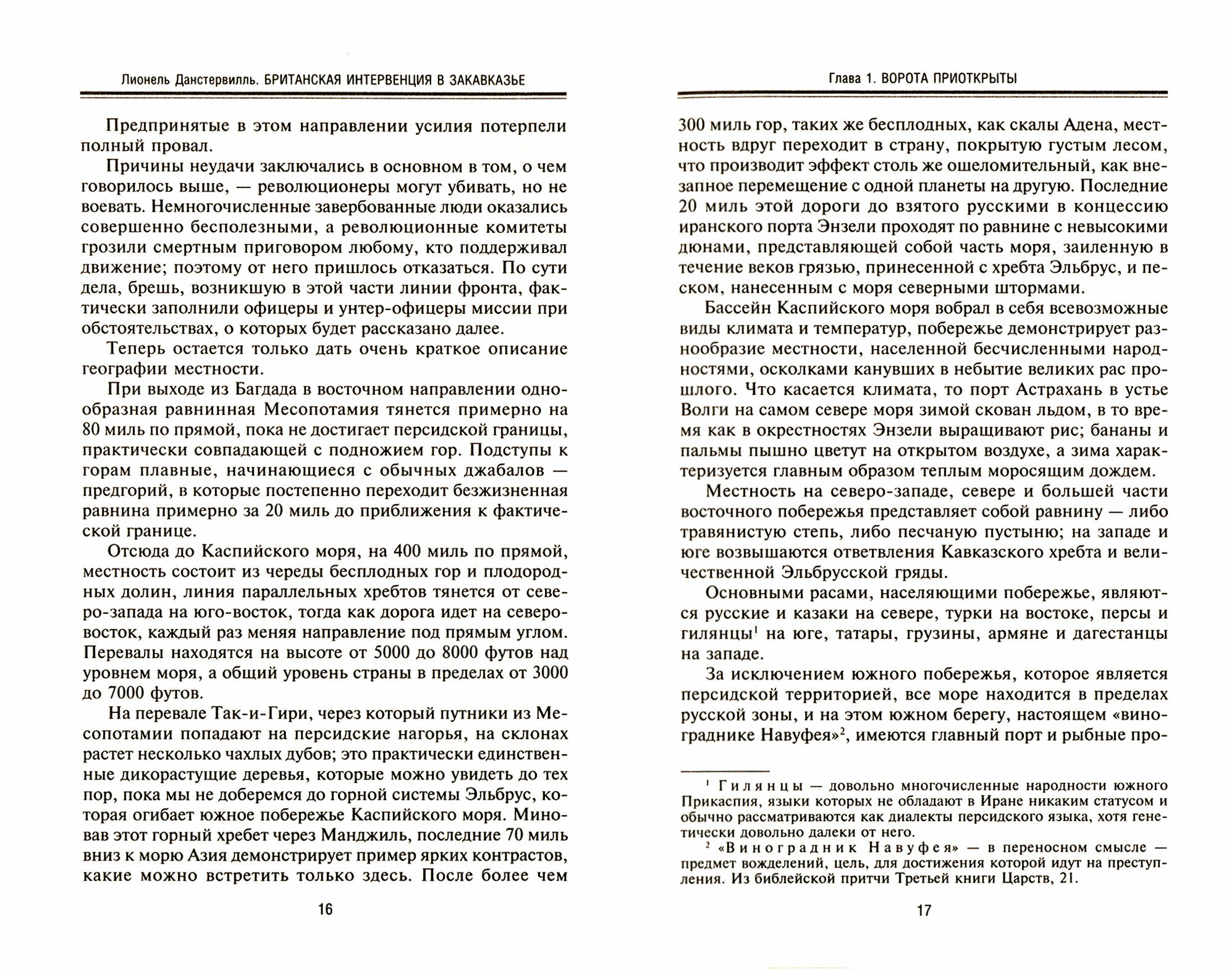 "Британская интервенция в Закавказье" - название в духе советской пропаганды. На самом деле, это история одного отряда, высланного из Персии в Баку в 1918 г. в условиях развала власти в бывшей Российской Империи и продолжающейся Первой мировой войны, с целью недопущения захвата нефтепромыслов турецкими войсками. Дает прекрасное представление о ситуации в Закавказье в Гражданскую войну. Поможет понять подоплеку романа "Али и Нино" Курбан Саида, хотя конечно без романтизма. И еще интересный факт - автор, британский офицер Лионель Данстервилль, это повзрослевший Сталки, герой повести и однокласник Киплинга