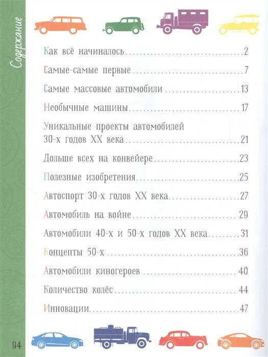 Эта книга, словно машина времени, перенесёт вас через несколько сотен лет и покажет эволюцию автомобилей. Вы увидите, как менялись механизмы со времён парусной повозки Симона Стевина и «самокатки» Кулибина до наших дней. Узнаете, когда появились зеркала заднего вида и ремни безопасности, чем отличались концепты 50-х годов ХХ века. Самые разные - легковые и грузовые, коллекционные, военные, спортивные и сверхзвуковые - автомобили и множество любопытных фактов о их создании и создателях представлены в этой книге. Для младшего школьного возраста.