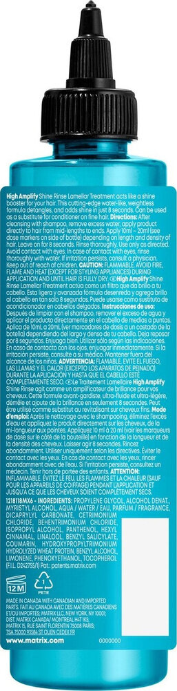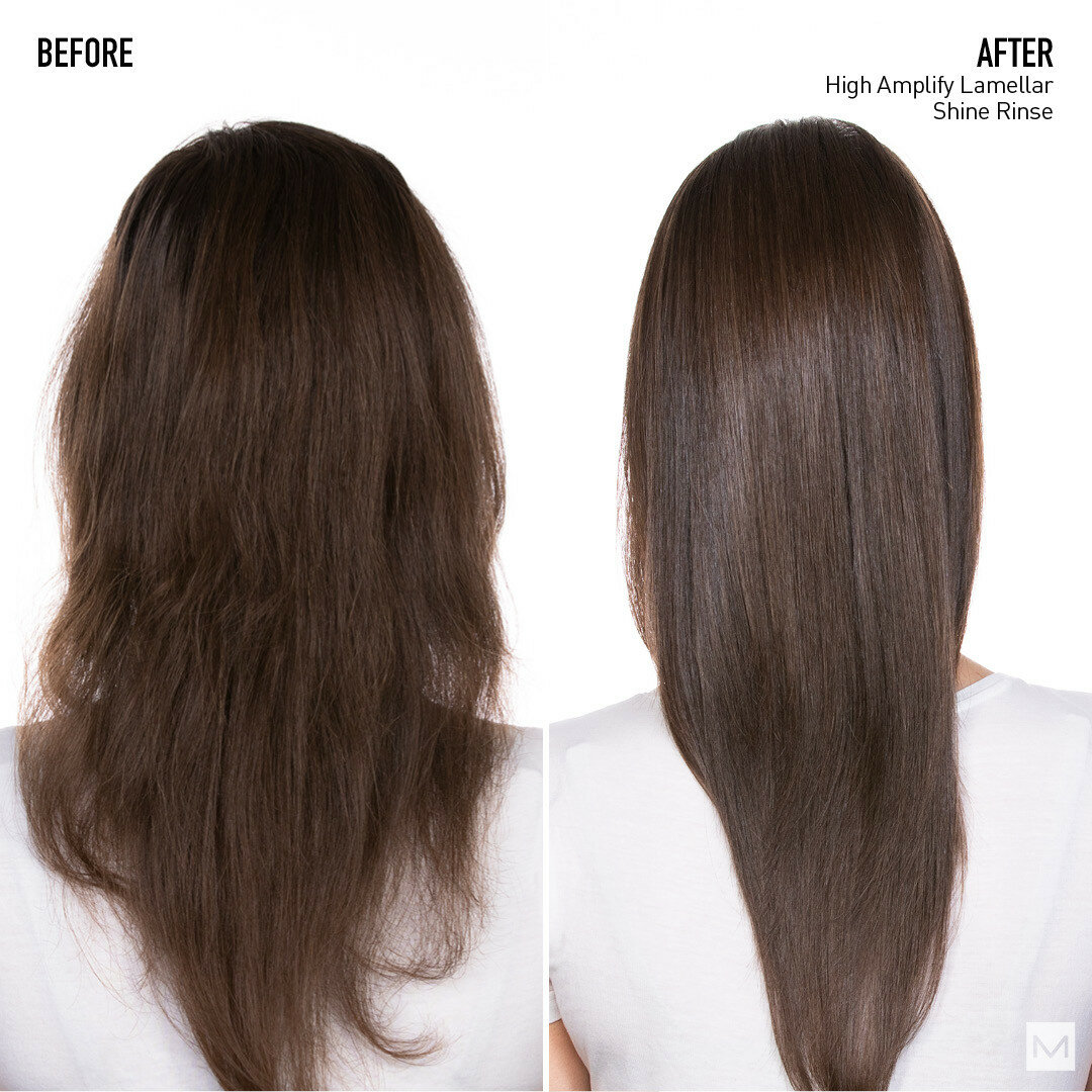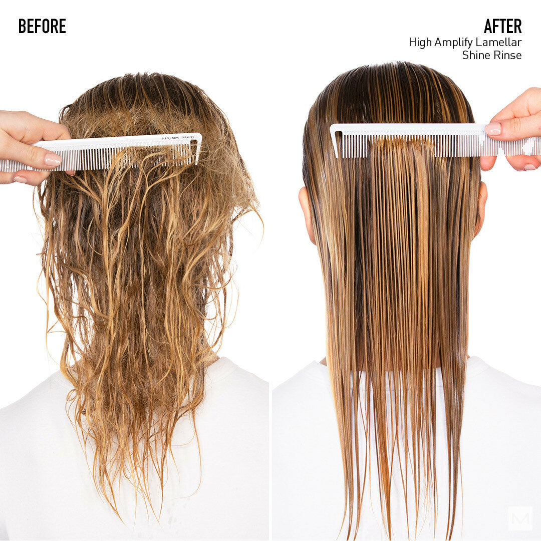 Ламеллярная вода без силиконов High Amplify Shine Rinse заменяет кондиционер в уходе и придает волосам мгновенное сияние и упругость, которые не утяжеляют объем. Подходит для всех типов волос. Невесомые кондиционирующие молекулы, активированные в воде, обволакивают каждую прядь, придавая мягкость. Мгновенное расчесывание за 8 секунд. Вода оставляет после использования приятный аромат на волосах.