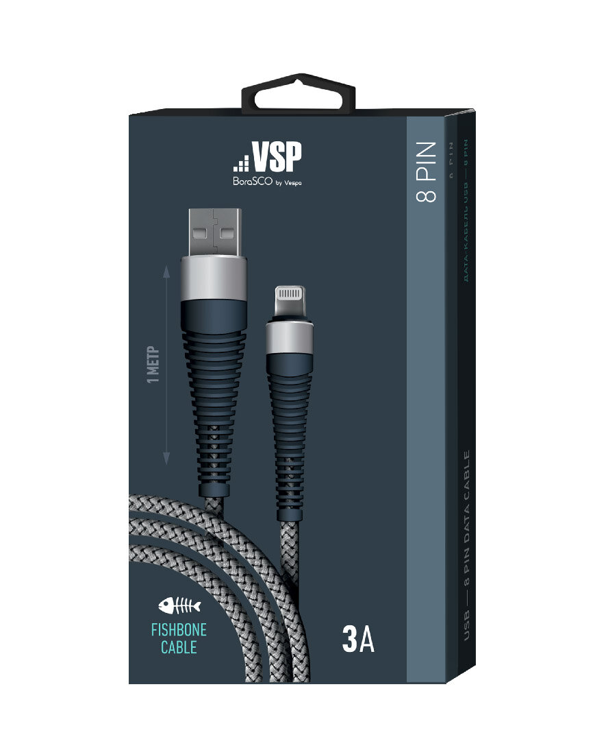 Кабель BORASCO Fishbone Lightning (m) USB A(m) 1м серый [38508]
