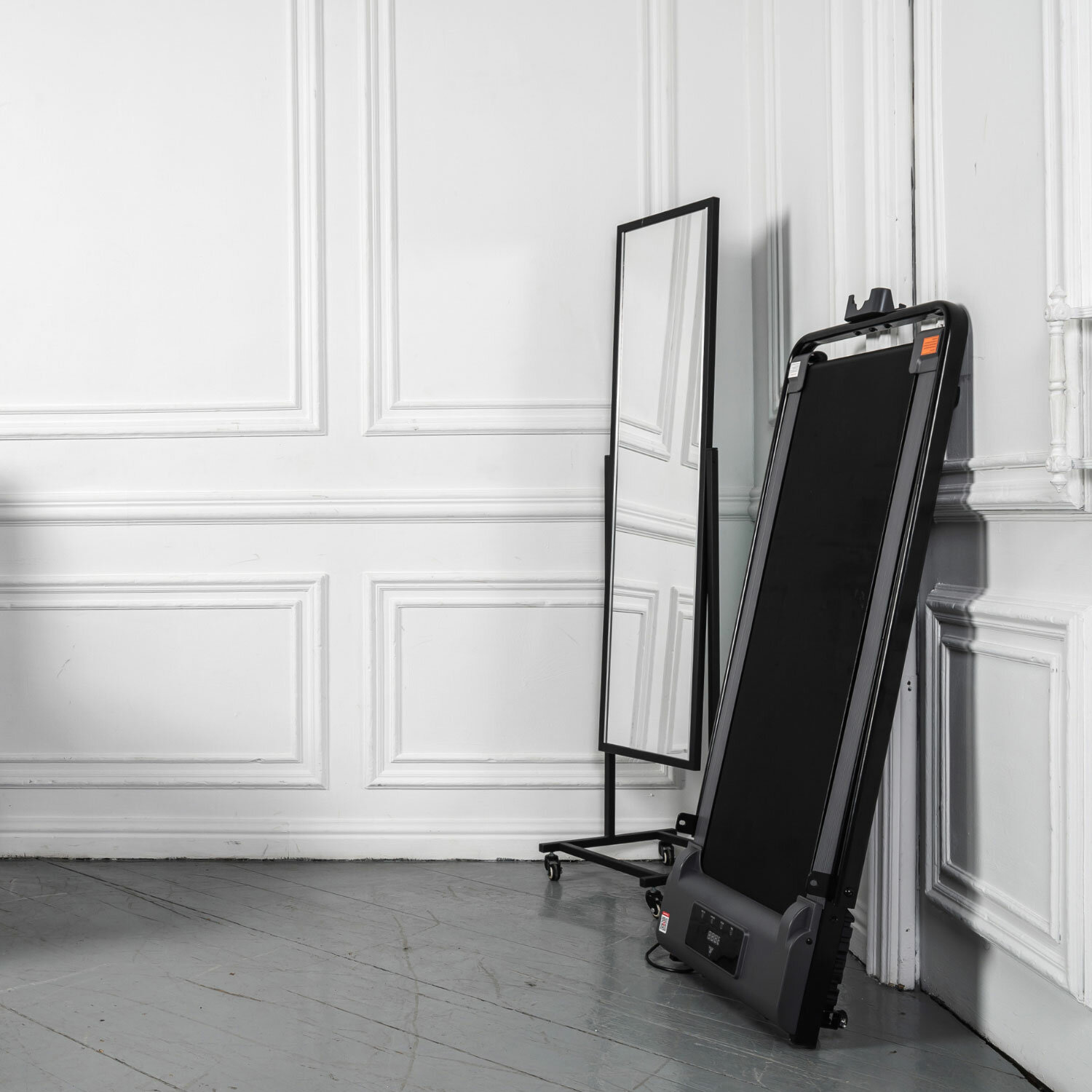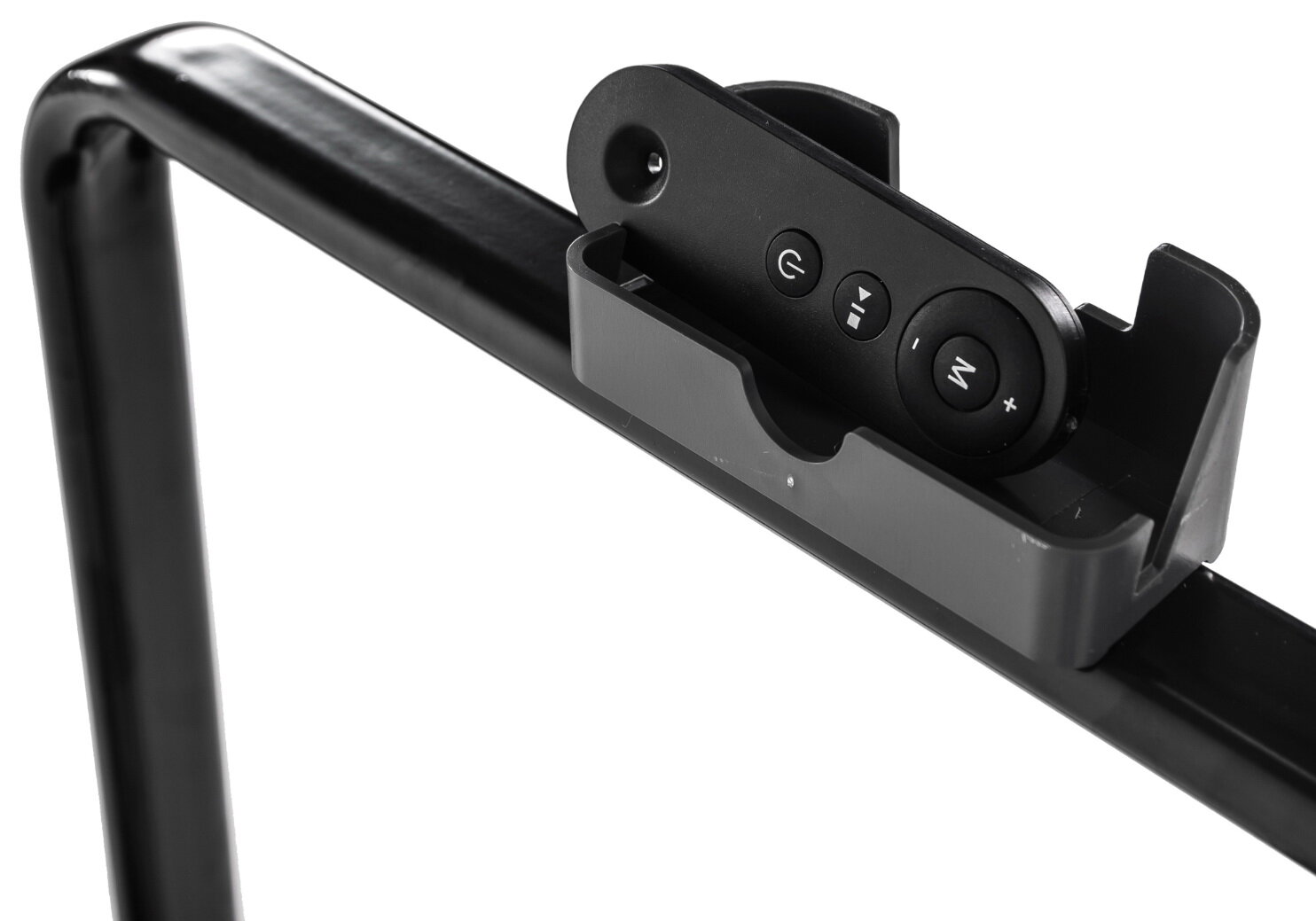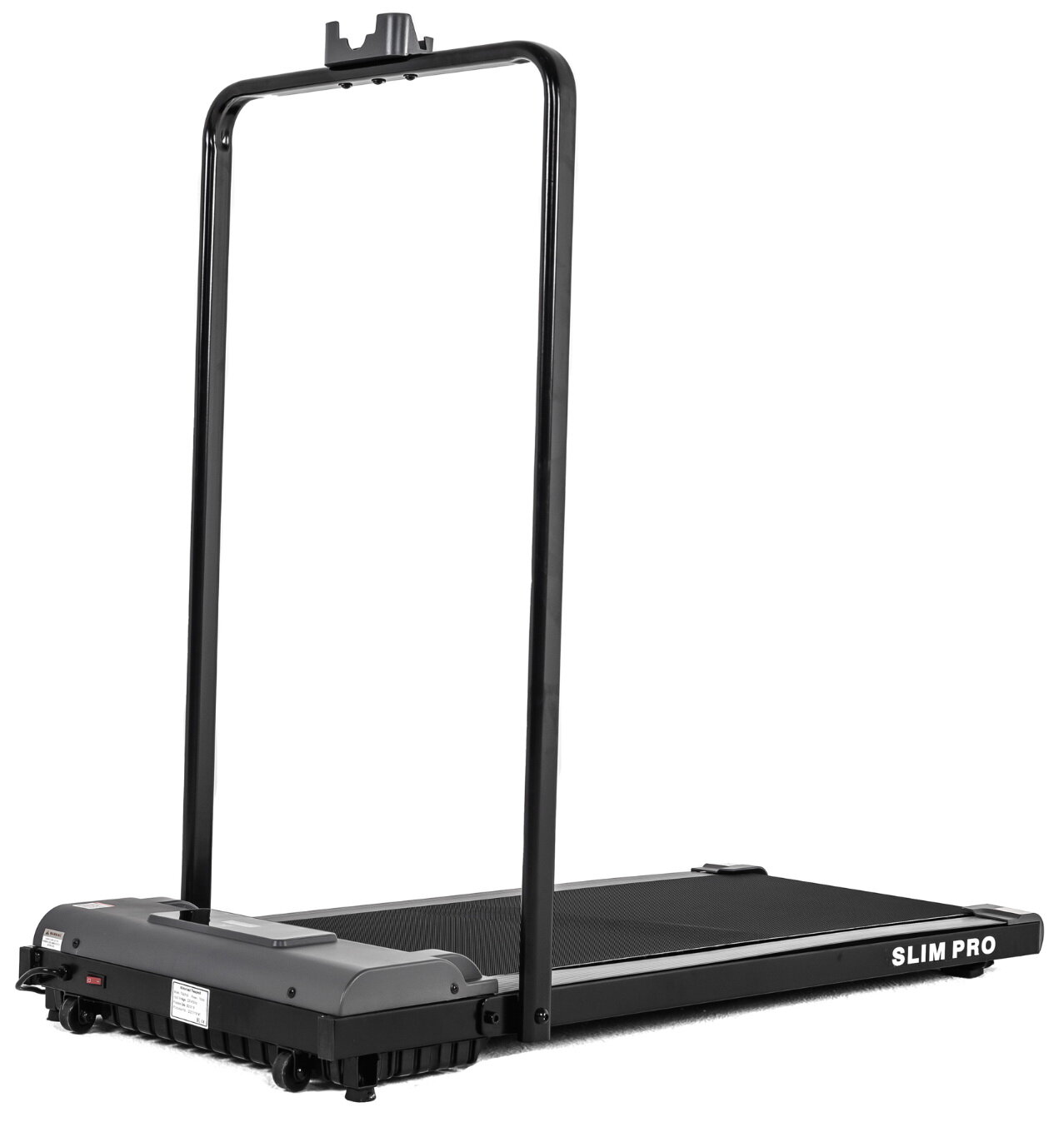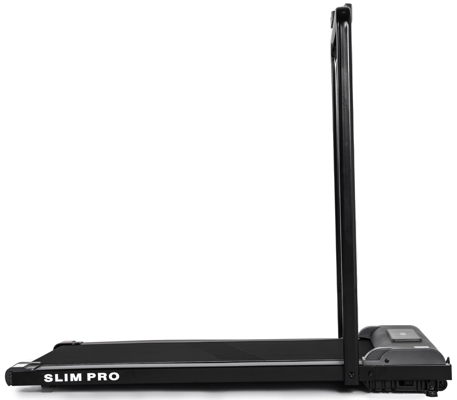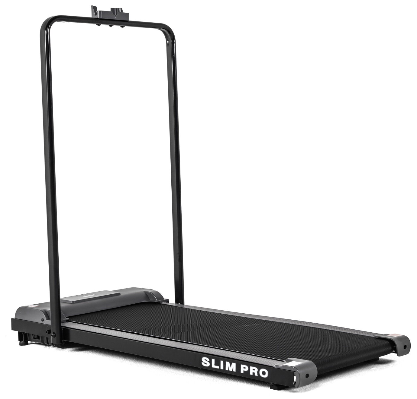 Беговая дорожка DFC SLIM Pro не имеет привычной консоли. Управление происходит с помощью дистанционного пульта управления (ДУ), или через приложение, установленное на ваш смартфон или планшет. На дорожке установлен удобный складной поручень с держателем под девайс и пульт.
