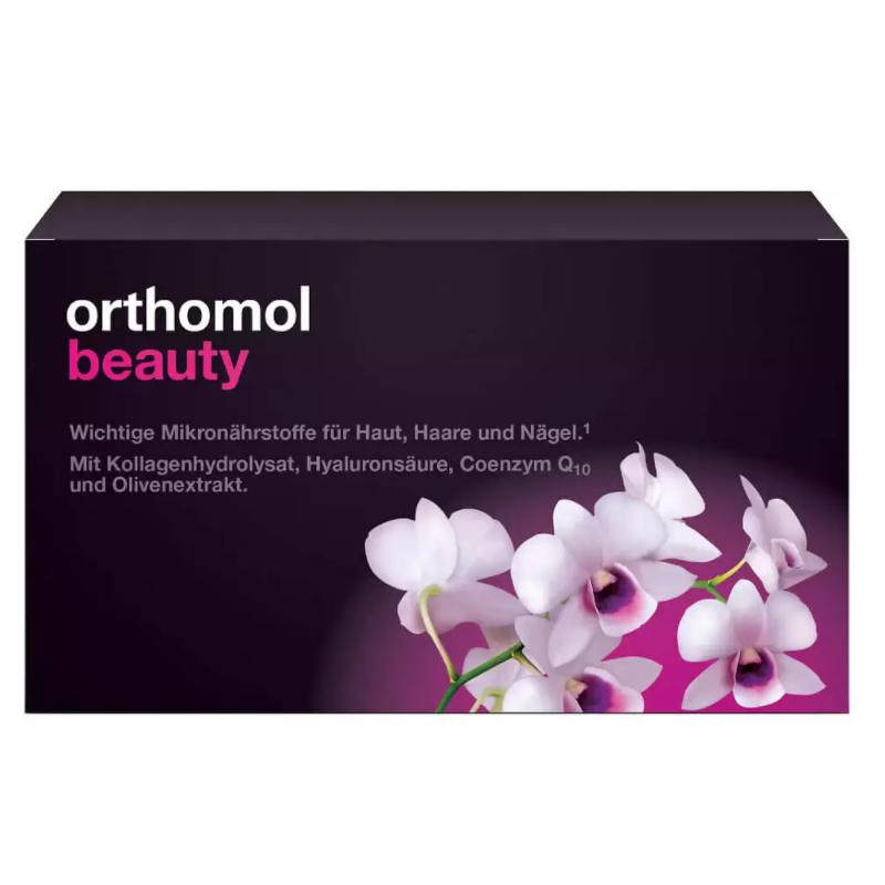 Orthomol Beauty-новый напиток для сохранения естественной красоты с инновационным сочетанием коллагена, гиалуроновой кислоты и комплекса Phytamin-Q 10. Включите комплекс Orthomol Beauty в свой регулярный ритуал красоты и обеспечьте вашу кожу, волосы и ногти здоровьем. Гиалуроновая кислота и коллаген обеспечивают эластичность кожи, замедляют старение; Оливковый экстракт оказывает хорошее влияние на состояние кожи, защищая её от вредного разрушающего воздействия УФ-лучей, обладает антиоксидантными и противовоспалительными свойствами; Витамин C способствует естественному стимулированию выработки коллагена для нормальной функции кожи, а также витамин Е, Цинк и Селен, которые защищают клетки от окислительного процесса; Биотин и Цинк способствуют улучшению состояния кожи, оказывают положительный результат для роста ногтей и волос, делая их прочными и здоровыми; Коэнзим Q10 отвечает за синтез энергии и регулирует использование кислорода организмом. Тормозит естественные процессы старения, борется с действием свободных радикалов, обеспечивает выведение токсинов, улучшение внешнего вида кожи.