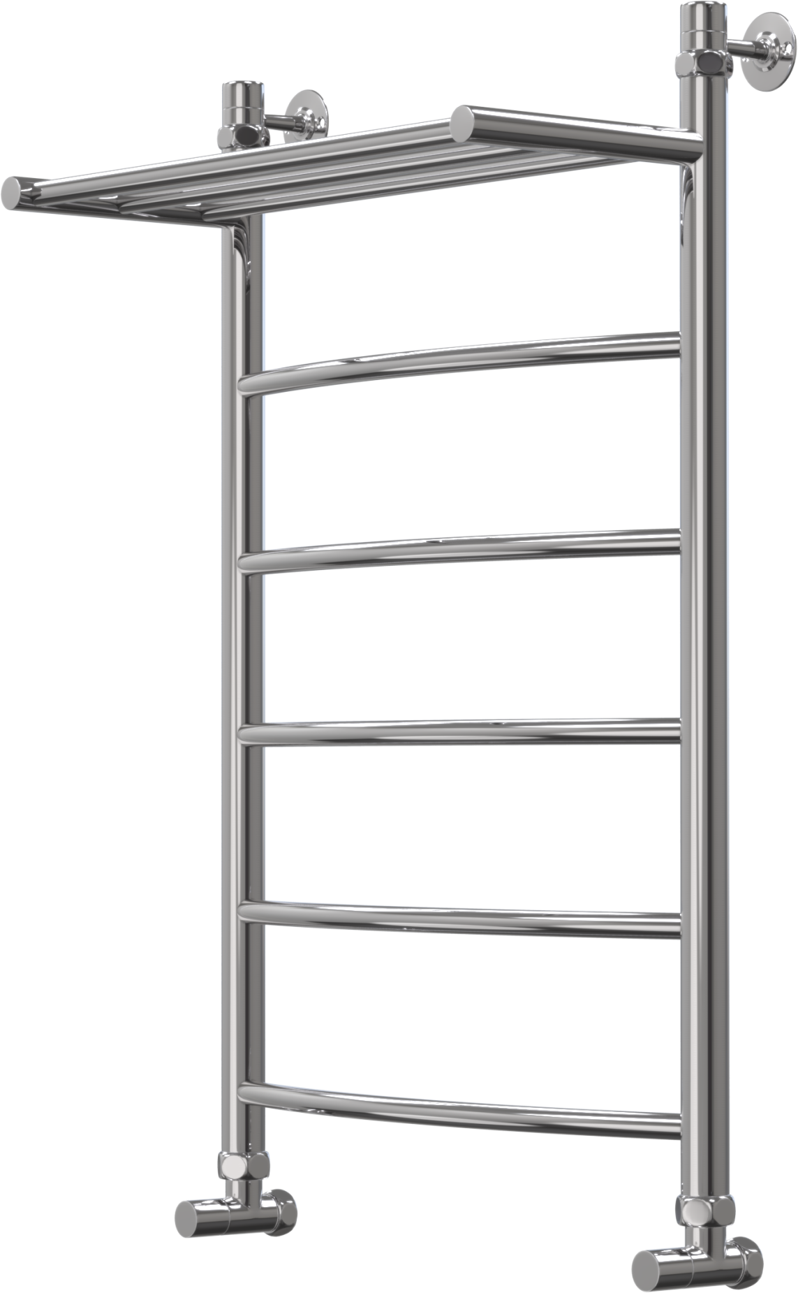 Арго Универсал - лестничный полотенцесушитель из нержавеющей стали с дополнительной полкой для размещения большего количества вещей. Аксессуар подключается к системе горячего водоснабжения.
