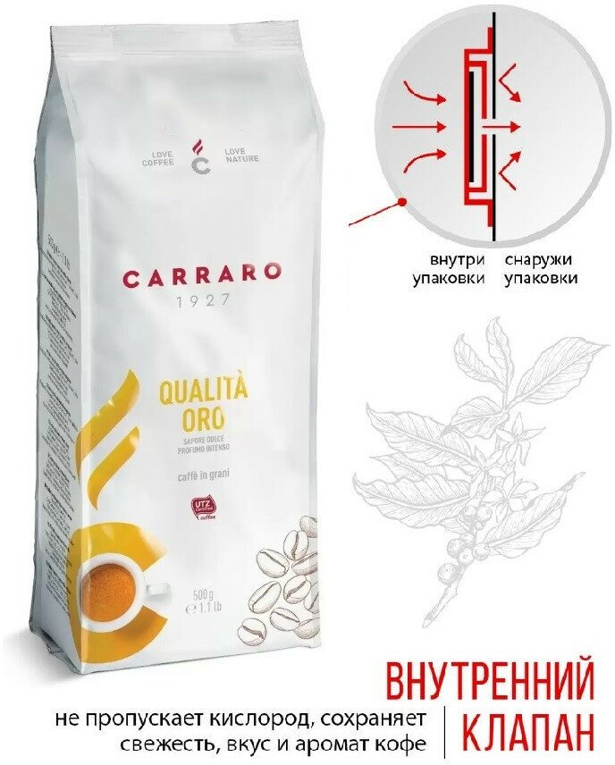 Кофеварки и кофемашины Carraro Carraro Qualita Oro Carraro Qualita Oro, кофе натуральный жареный в зернах, высший сорт. Данный продукт состоит из смеси премиальных зерен Арабики и Робусты. Кофе Carraro Qualita Oro обладает насыщенным цветочным ароматом и создан для тех, кто предпочитает насыщенный вкус с нежными бархатистыми оттенками.