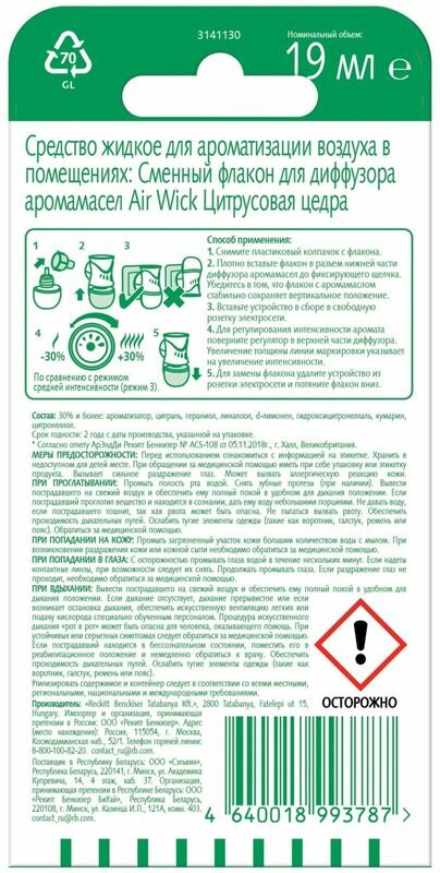 Сервис сравнения цен СкидкаГИД предлагает сравнить цены на товар «Сменный флакон для Air Wick Цитрус цедра 19мл»