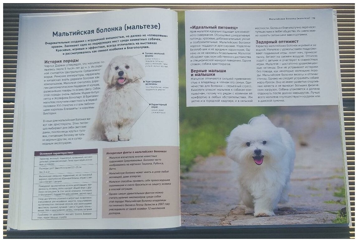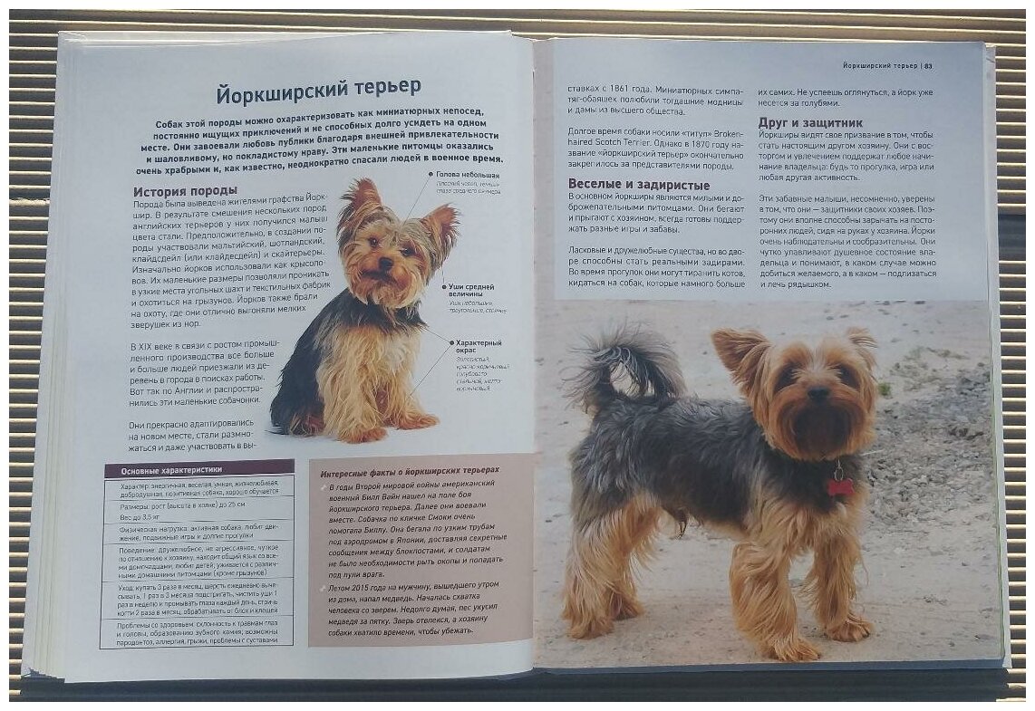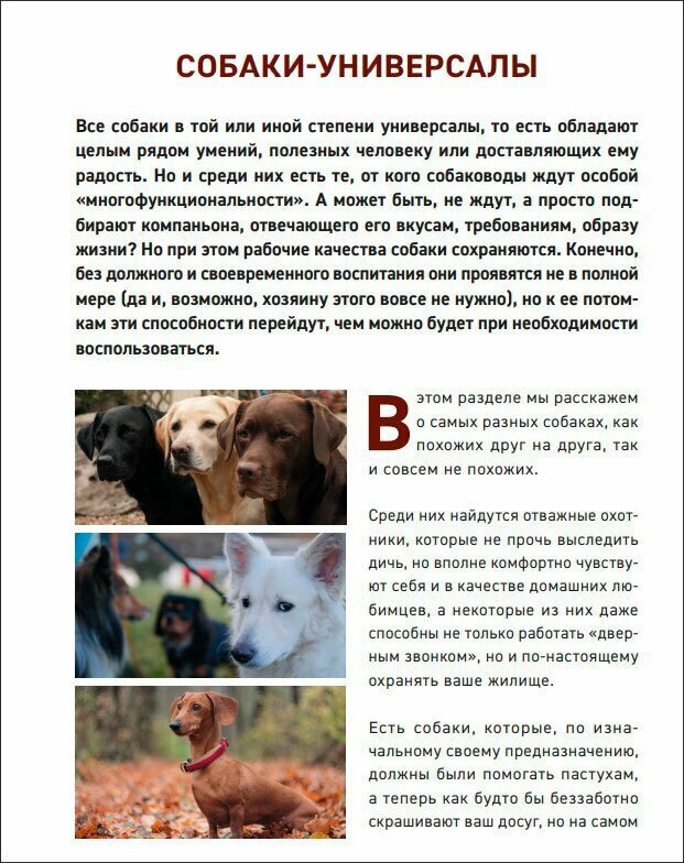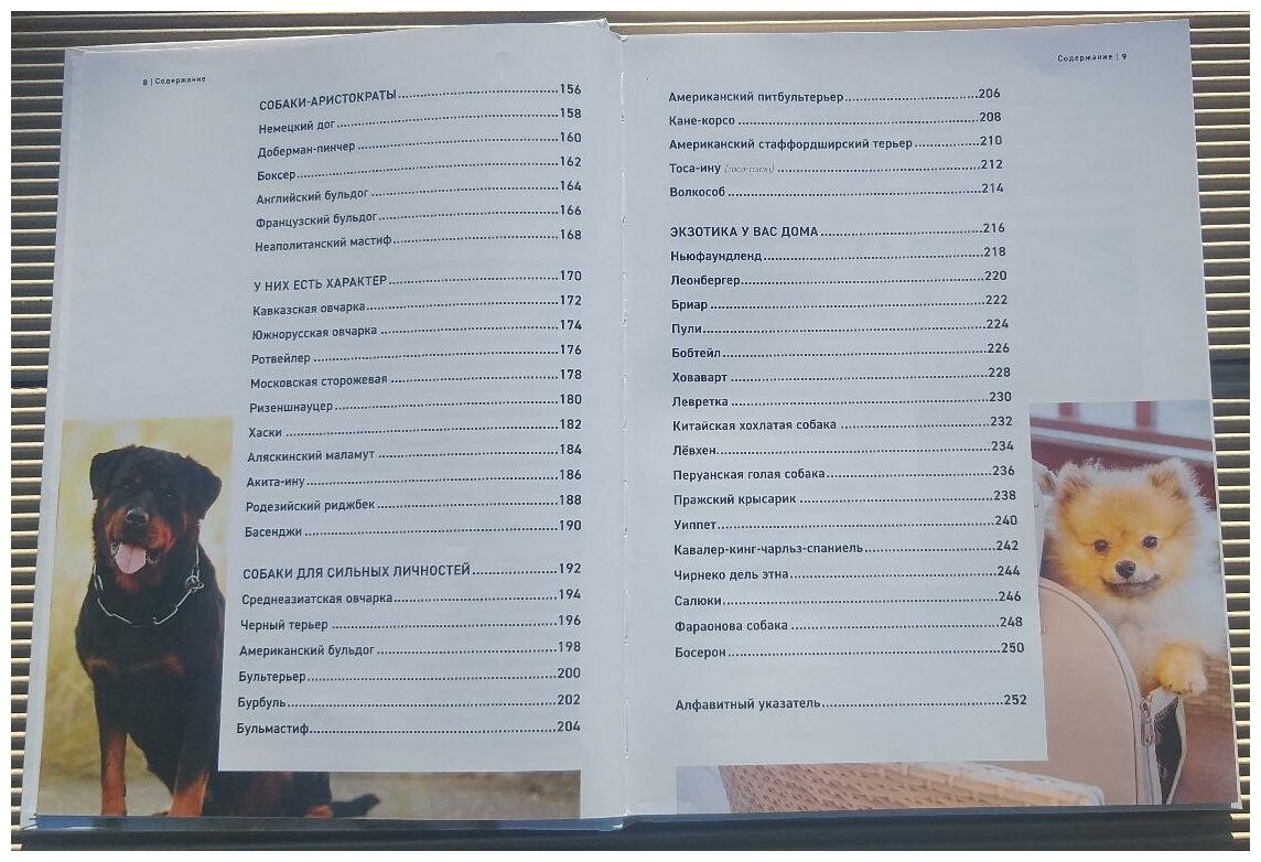 Осталась полностью довольна книгой, она однозначно стоит внимания всех любителей собачек. Язык простой, доступный, иллюстрации, точнее фотографии в качестве выше среднего, собаки как живые на них. Понравились нюансы и описание отличительных черт каждой породы. Оформление отличное, листы плотные, сама книга объемная, выглядит солидно.