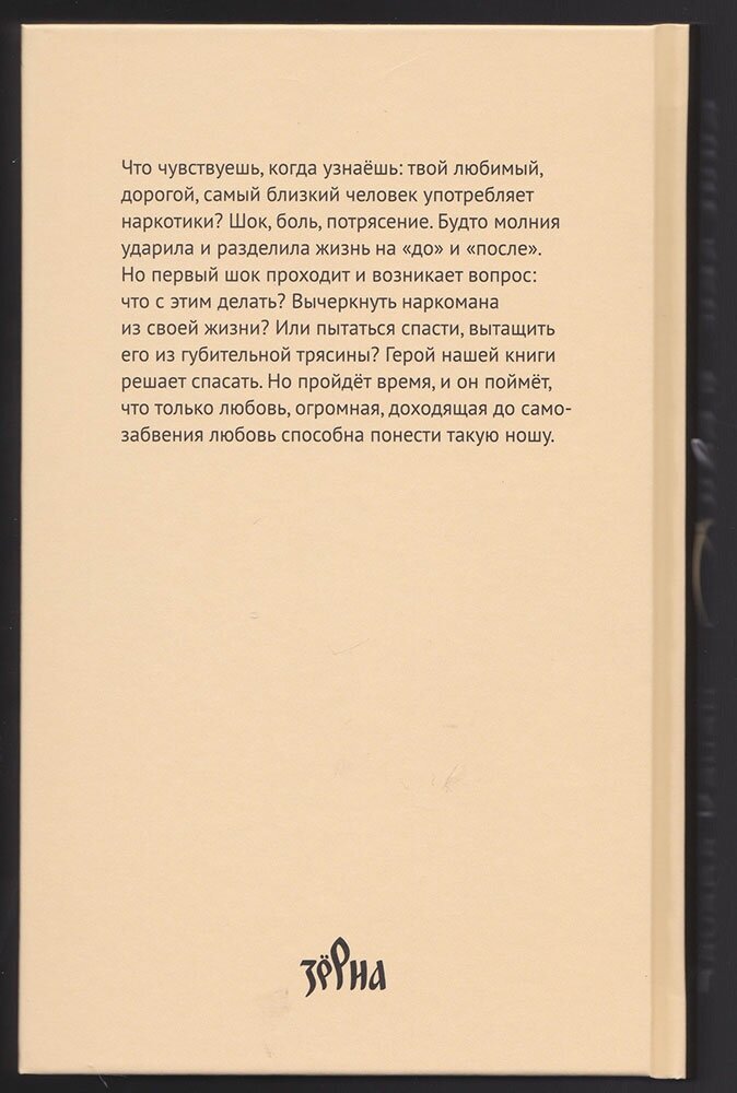 Но первый шок проходит, и возникает вопрос: что с этим делать? Вычеркнуть наркомана из своей жизни? Или пытаться спасти, вытащить его из губительной трясины? Герой книги решает спасать. Но пройдёт время, и он поймёт, что только любовь, огромная, доходящая до самозабвения любовь способна понести такую ношу.