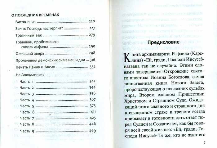 Сборник слов и статей архимандрита Рафаила (Карелина) называется «Ей, гряди, Господи Иисусе!» не случайно. Этой фразой завершается Откровение святого апостола Иоанна Богослова, самая таинственная книга Нового Завета, пророчествующая о последних судьбах мира, Втором славном Пришествии Христовом и Страшном Суде. И сегодня о нашем времени говорят, как о предапокалиптическом, когда происходят предсказанные Священным Писанием и святыми отцами утрата веры и христианского благочестия.