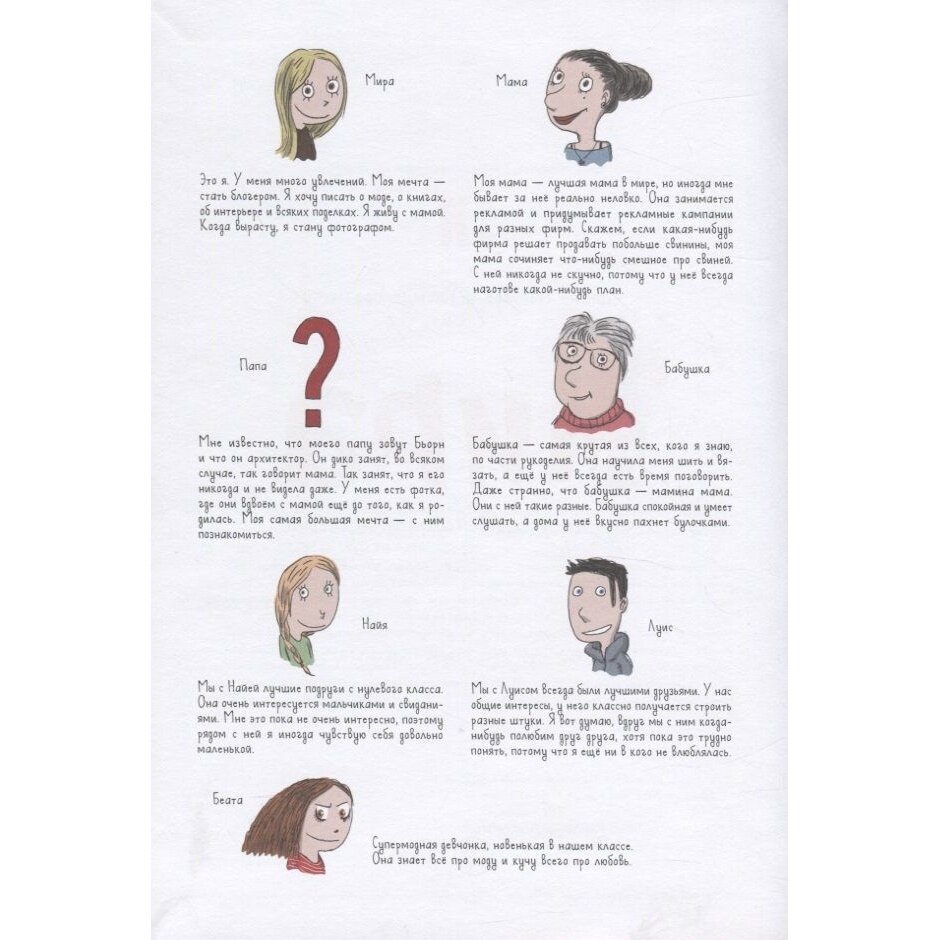 На наших реалиях буквально, современно и забавно. Тут вам и соц сеть всеми известная, и проблемы с лайками, как поменять все в комнате, и идти к своей мечте! Графический комикс о взрослении девочки, ну не совсем может и взрослении, а больше о тех самых насущных проблемах, что испытывала практически каждая девочка лет в 10-12. Дружба, девчонки, влюбиться в мальчика! Как все? ! А, если не получается...Проблема ли это! Мама , папа, клуб, одноклассники и Новый год! Забавная история о девочке Мире, а может и о вас? Повод оглянуться в прошлое)