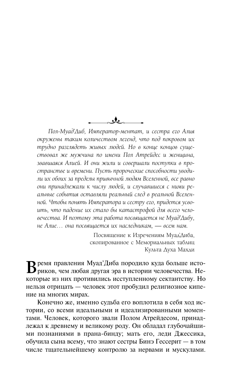 «Мессия Дюны», вторая книга саги об Арракисе, открывает перед читателем мир головокружительных интриг, исход которых роковым образом повлияет на судьбу Муад’Диба.