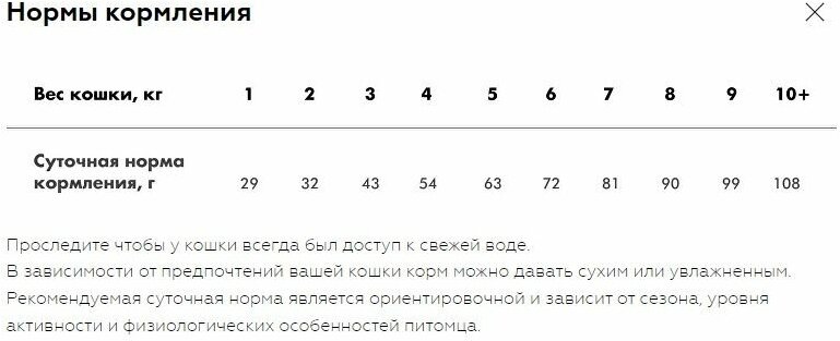 В зависимости от предпочтений вашей кошки корм можно давать сухим или увлажнённым. Рекомендуемая суточная норма является ориентировочной и зависит от сезона, уровня активности и физиологических особенностей питомца.