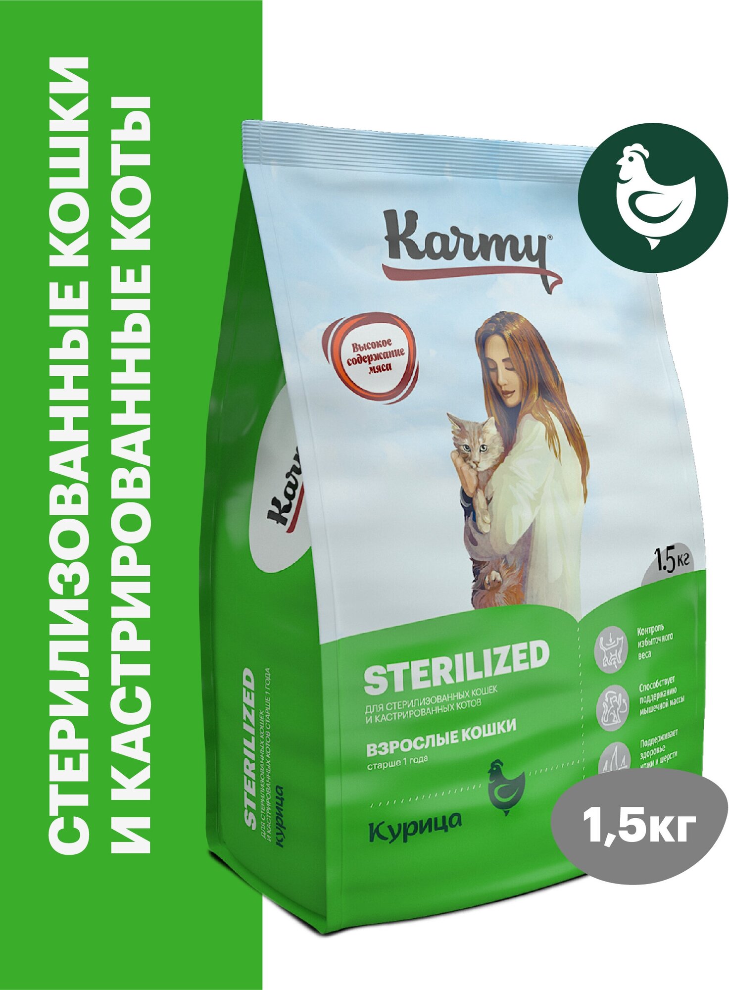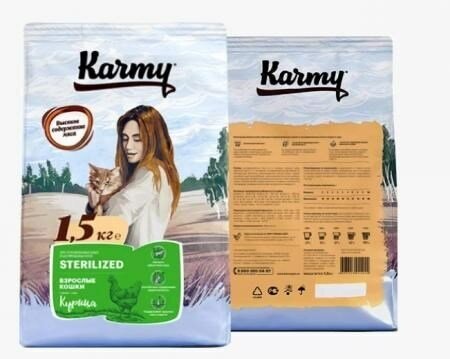 Сухой корм для кошек Karmy Sterilized c курицей 15 кг