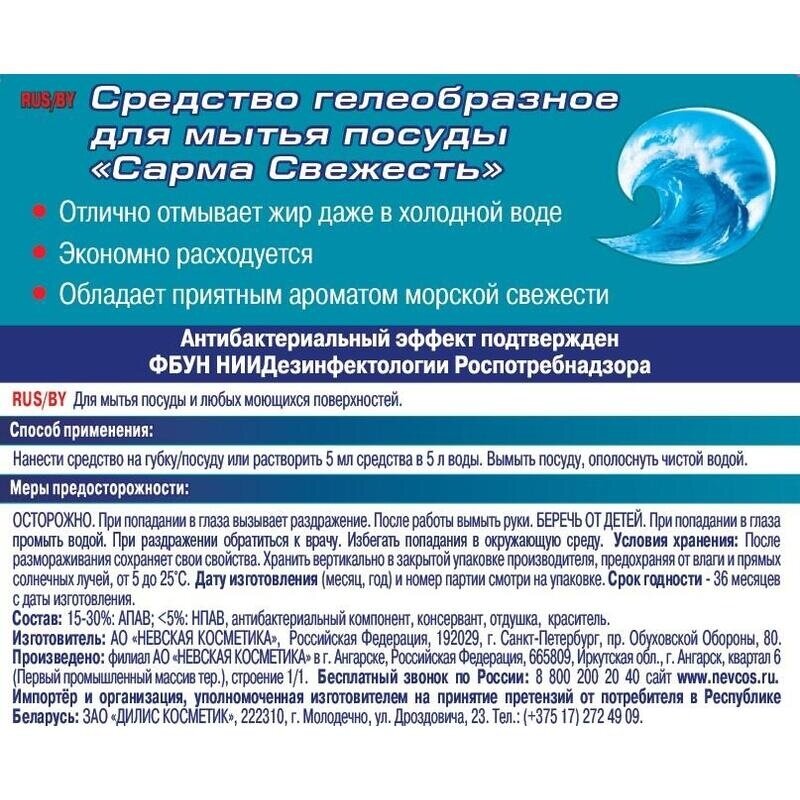 Сервис сравнения цен СкидкаГИД предлагает сравнить цены на товар «Средство для мытья посуды Sarma "Свежесть" 7-в-1 500мл (6060*)»