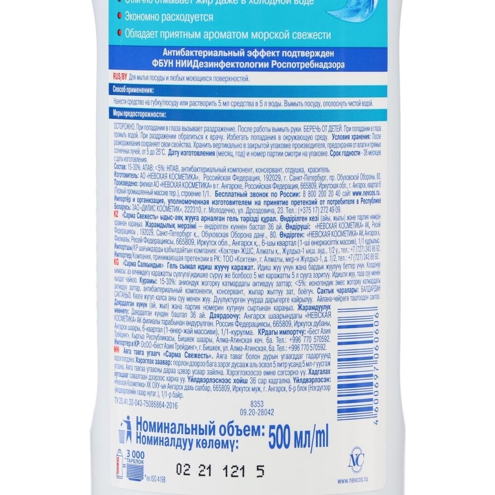 Средство для мытья посуды Sarma "Свежесть" 7-в-1 500мл (6060*)