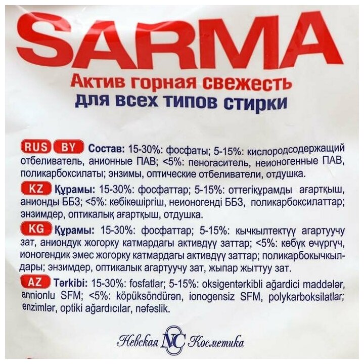 На сегодняшний день товар «Стиральный порошок Sarma "Горная свежесть" 24кг (01021)» можно купить с кешбеком в 1 магазине: Яндекс.Маркет