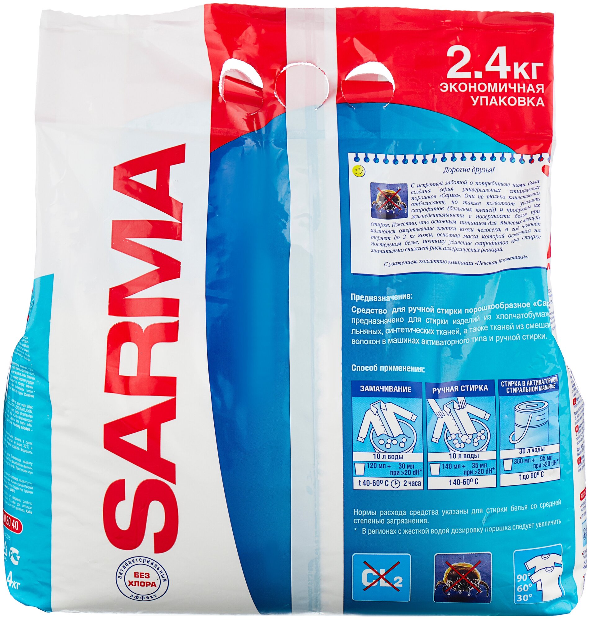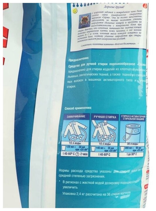Предназначен для стирки белого и светлого белья из хлопчатобумажных и синтетических тканей, а также вещей из смешанных волокон в машинах активаторного типа и вручную. Благодаря высокому уровню пенообразования эффективен при замачивании.