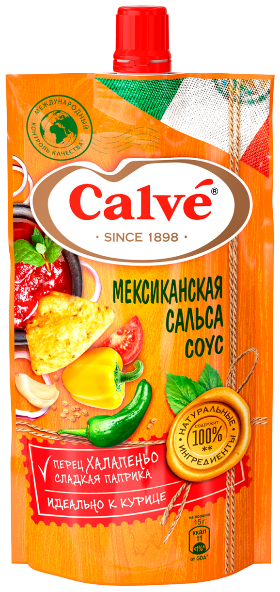 Если хотите придать блюду пикантную остроту в духе Мексики, то непременно воспользуйтесь «Мексиканским Сальса» соусом Calve. Кусочки томатов, перчики халапеньо, чили, кинза и другие приправы – вы почувствуете атмосферу этой национальной кухни. А сам соус отлично дополнит любые блюда из мяса и курицы.