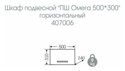 Подвесной шкаф Омега 50х30, горизонтальный - корпус изделия выполнен из влагостойкого ЛДСП, фасад из МДФ. Фасад мебели покрыт глянцевой ПВХ плёнкой.