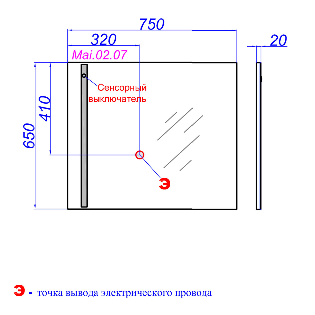 | Ширина зеркала | 750.000 |