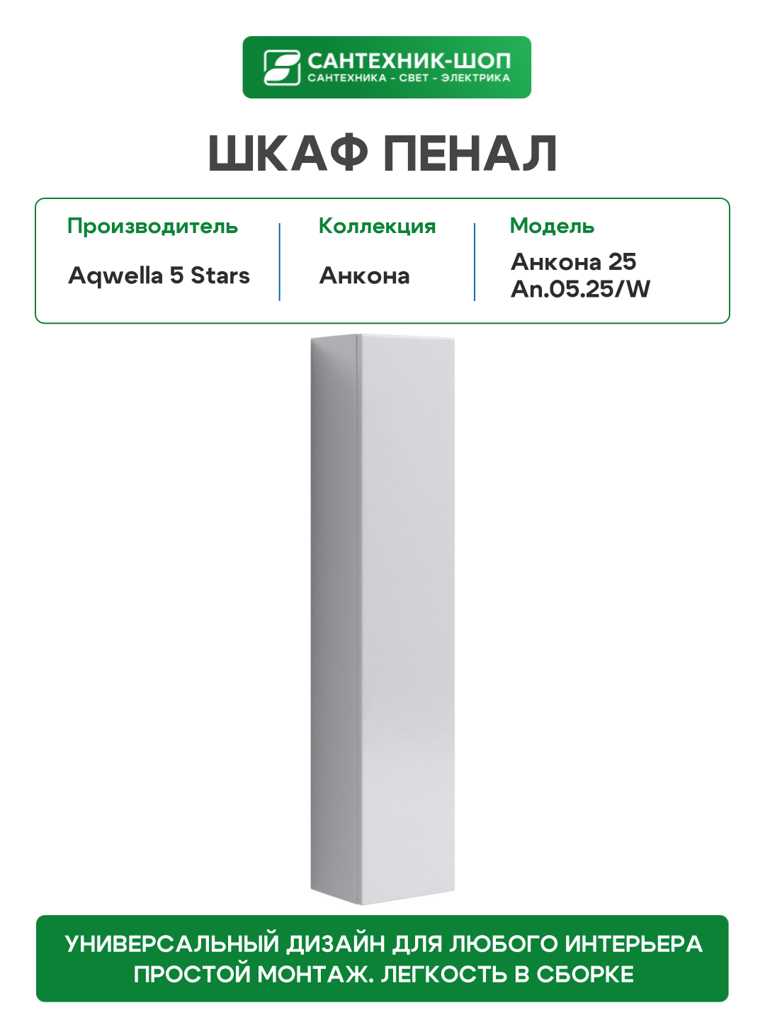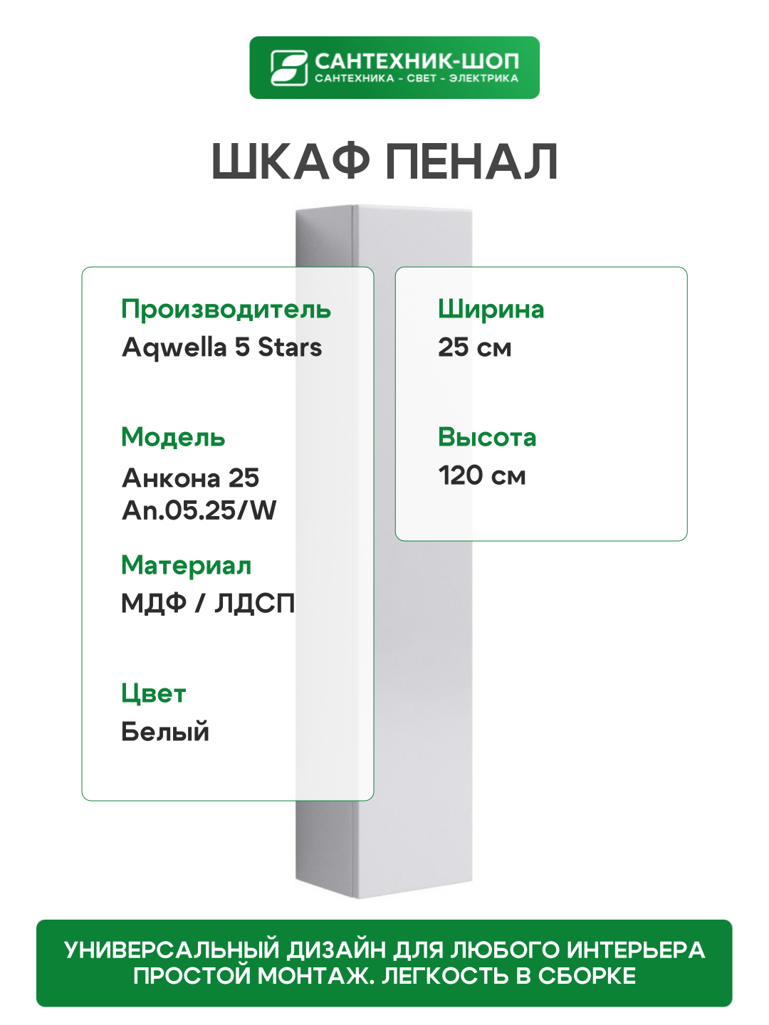 Шкаф-пенал Aqwella Анкона An.05.25/W
