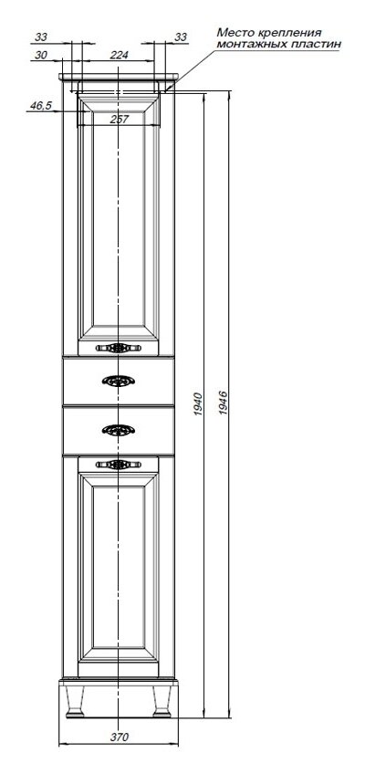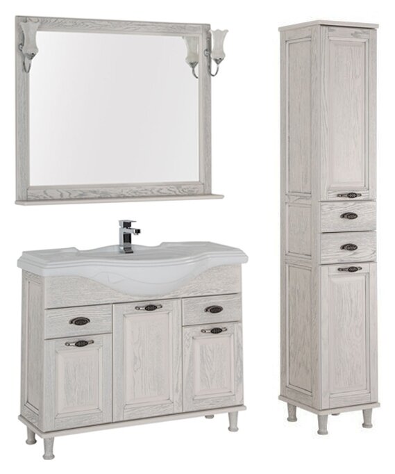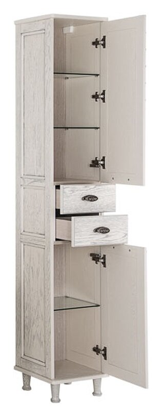 Шкаф-пенал Aquanet Тесса 35 можно приобрести дополнительно к базовому комплекту. Он разработан в стиле конкретной серии. Выполнен из массива дуба с натуральным шпоном и с отделкой патиной, что придает мебели налет благородной старины и делает ее похожей на антикварную. Это полноценный шкаф-колонна высотой два метра, в котором предусмотрены два выдвижных ящичка и большое пространство с полочками за распашными дверцами с доводчиками. В пенале без труда найдется место для всех атрибутов, необходимых для ванных удовольствий: полотенец, скрабов, гелей, косметических средств, щеточек, мочалок и так далее.