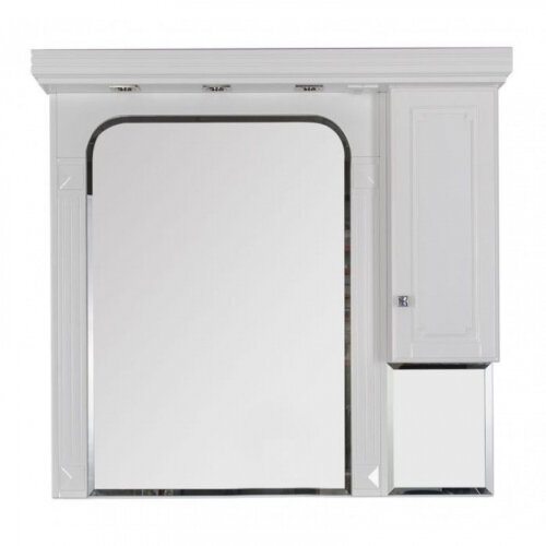Элегантное зеркало Фредерика, входящее в одноименный набор мебели для ванной Акванет, может прекрасно сочетаться и с другими комплектами мебели в классическом стиле. При создании этой модели зеркала для ванной комнаты дизайнер вдохновлялся архитектурой Древней Греции. Арочная форма, изысканный декор в виде многоступенчатого карниза, пилястры на раме и аккуратная подсветка – все здесь продумано и выполнено с глубочайшим вниманием к деталям. Модель включает в себя большое зеркало и подвесной шкаф на распашной дверце, ручка которого инкрустирована кристаллами Swarovski. Три встроенных светодиодных светильника создают атмосферу легкости, воздушности и прослужат дольше обычного.