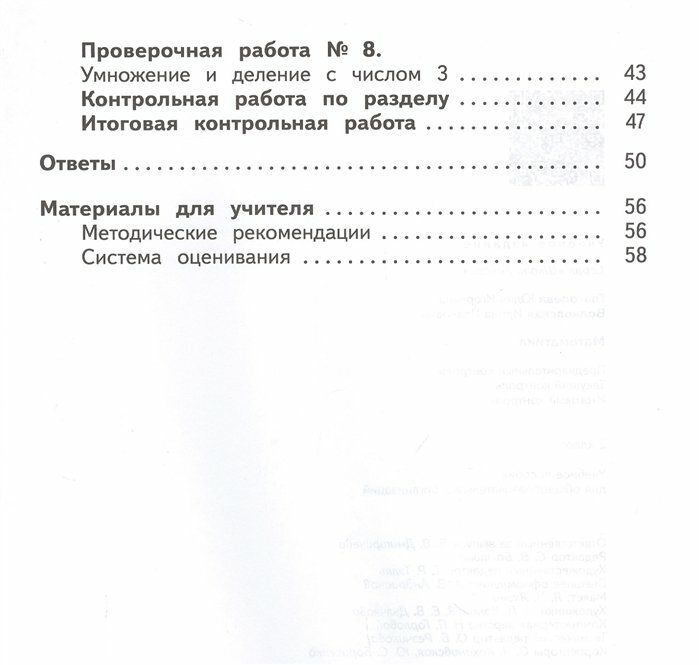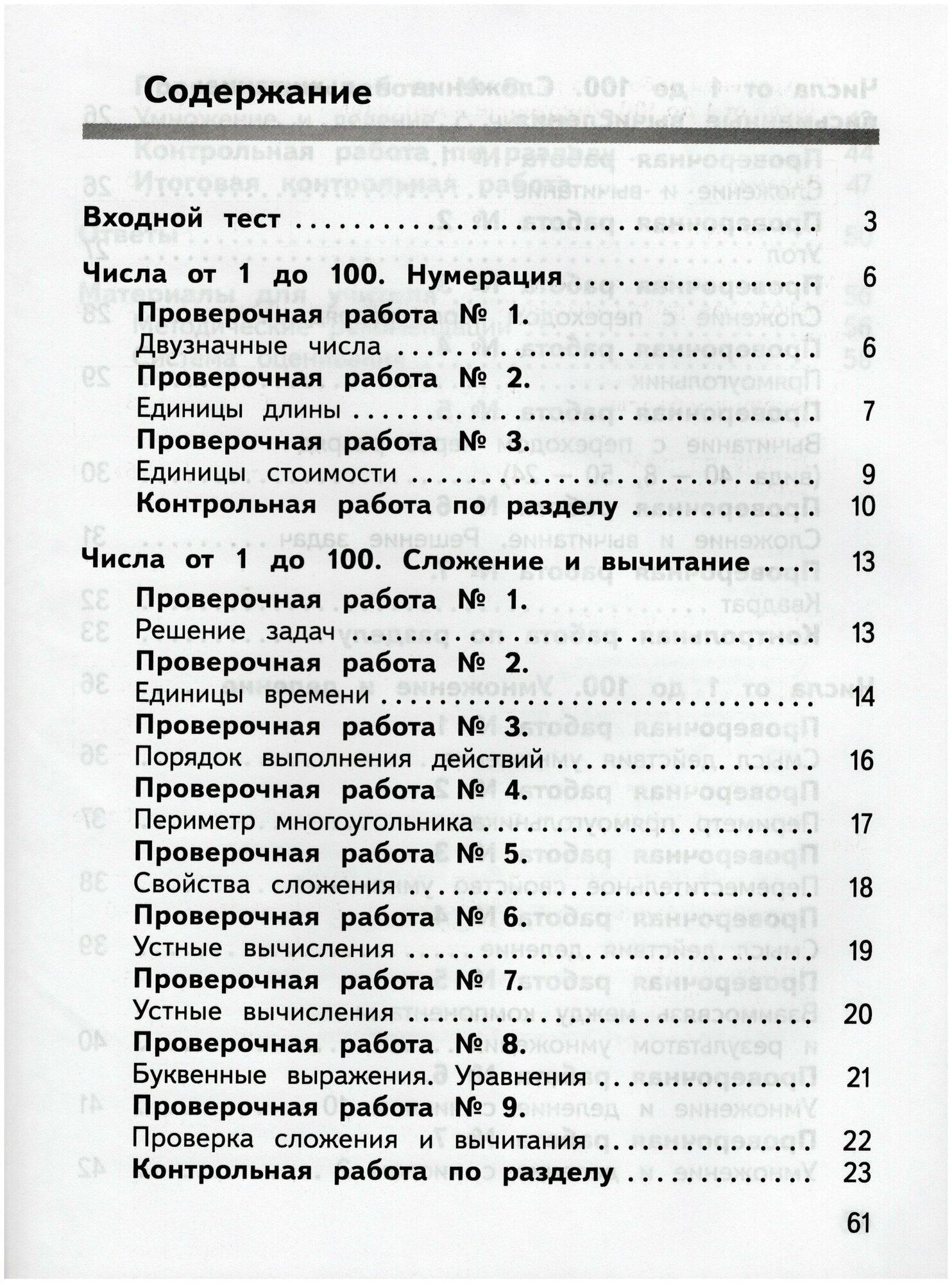 Учебное пособие предназначено для проверки предметных результатов по курсу "Математика. 2 класс" авторского коллектива под руководством М.И. Моро (УМК "Школа России"). Проверочные работы сгруппированы по разделам, соответствующим авторской программе и учебнику. В пособии представлен входной тест, проверочные и контрольные работы для текущего и тематического контроля знаний и умений, а также итоговая контрольная работа.