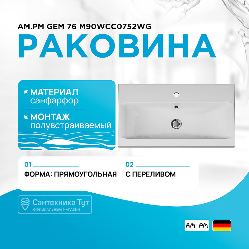 Износостойкие материалы в раковине Am.Pm Gem M90WCC0752WG