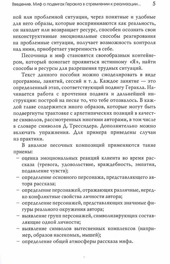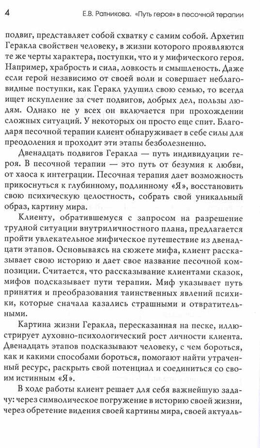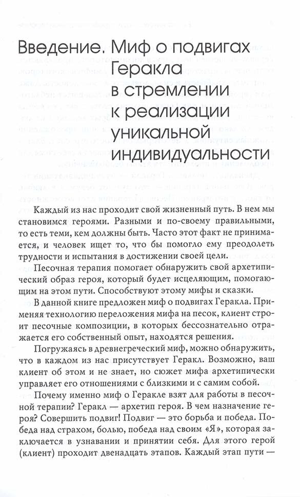 Метафорой жизненного пути человека, пути к самому себе в данной книге являются двенадцать подвигов Геракла. Для такого путешествия наиболее продуктивным методом будет песочная терапия. Предложенные в книге практические упражнения и техники как в юнгианском подходе, так и в интегративном позволят клиентам безопасно пройти двенадцать этапов пути: встретиться со своей тенью, со своими проблемами и страхами, провести инвентаризацию своих чувств, быть способным управлять своими эмоциями. Пройдя путь исследования своих чувств, они неизбежно придут к диалектике противоречивых состояний и к их гармонизации. И вместе с этим готовы будут совершить восхождение.