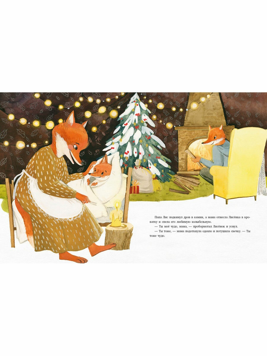 Какая замечательная идея в книге! Мы все ждём чудес от Деда Мороза, пишем ему письма с просьбами и желаниями, но не задумываемся о том, что сам волшебник остаётся без подарков. Маленький лисёнок решает это исправить и собирает для Деда Мороза целый букет чудес за весь год. Дочка очень воодушевилась этой историей, и вслед за лисёнком стала придумывать подарки для Дедушки Мороза. По-моему, отличный воспитательный эффект в самом хорошем смысле этого слова!