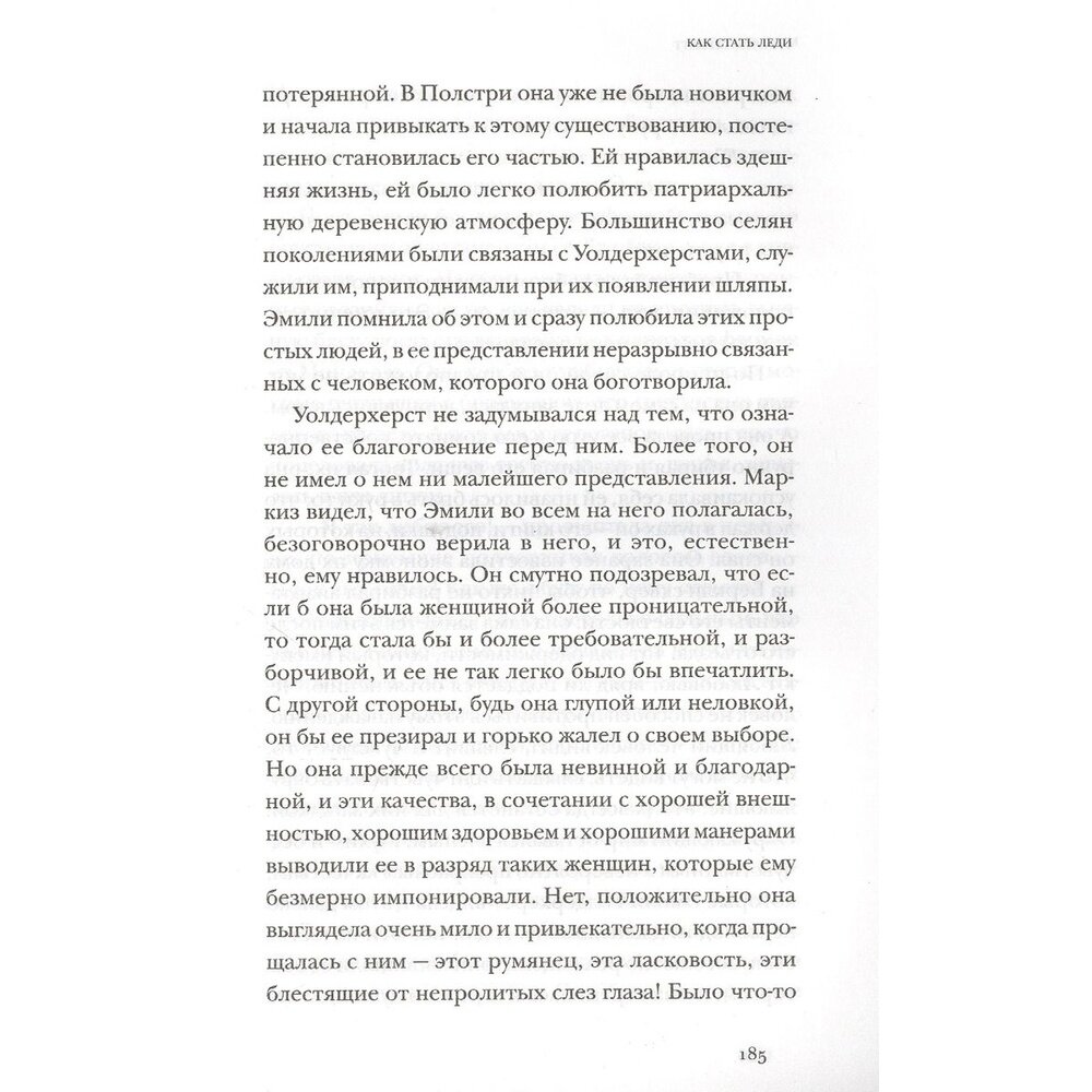 Главное богатство Эмили Фокс-Ситон, героини «Как стать леди», — ее золотой характер. Ей слегка за тридцать, она из знатной семьи, хорошо образована, но очень бедна. Девушка живет в Лондоне конца XIX века одна, без всякой поддержки, скромно, но с достоинством. Она умело справляется с обстоятельствами и получает больше, чем могла мечтать.