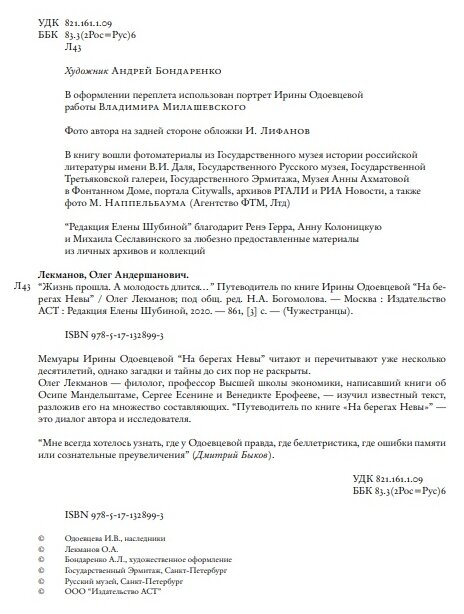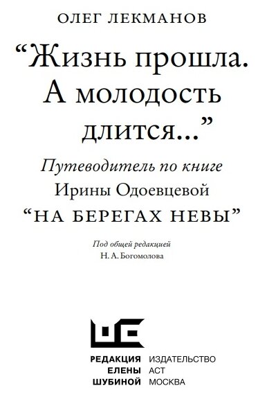 "Жизнь прошла. А молодость длится..." Путеводитель по книге Ирины Одоевцевой "На берегах Невы" (Олег Лекманов); Издательство АСТ, 2020