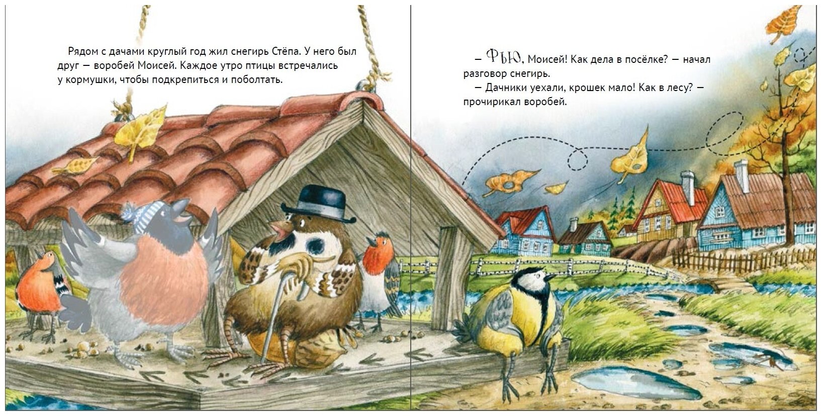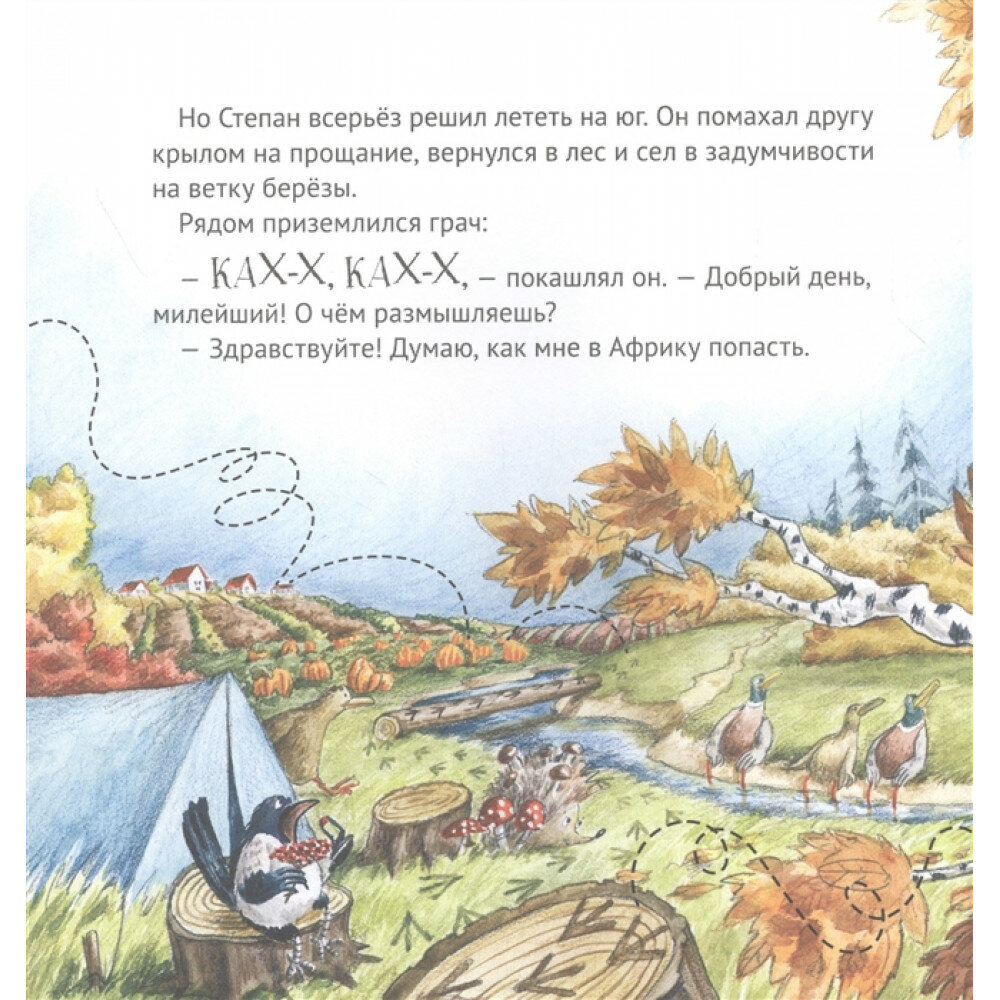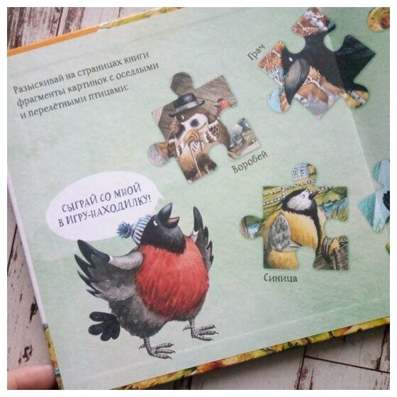 Сама история необычная, о том, как непоседа-снегирь по имени Степан осенью отправляется на юг и заодно по ходу сюжета знакомит читателей с оседлыми и перелетными птицами. На нахзаце обнаружится уютный домик-кармашек для закладки.