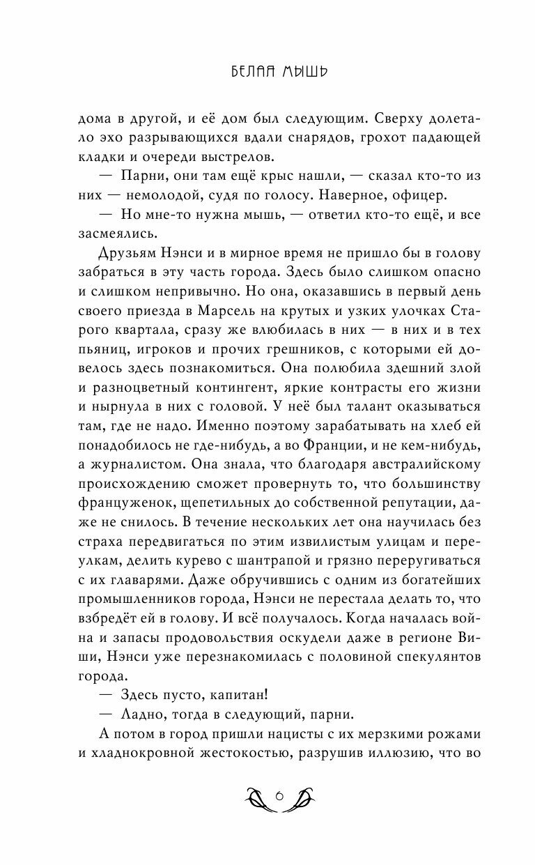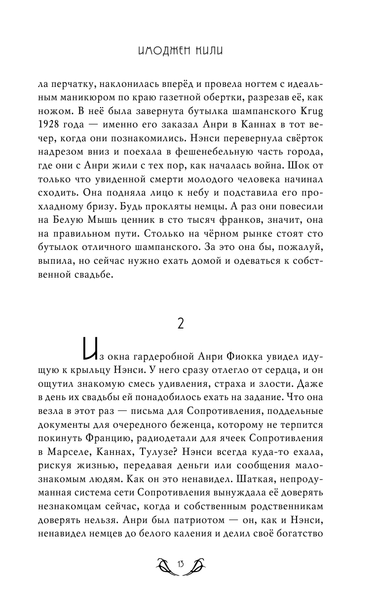 Имоджен Кили (Имоджен Робертсон и Дарби Кили) рассказывают о подлинных подвигах Нэнси, приправляя реальные события захватывающими сюжетными поворотами (в заключении книги можно найти их исследование жизни знаменитой шпионки). Авторам удалось показать такую силу женского характера, которую хочется чаще видеть в книгах и на экранах! -