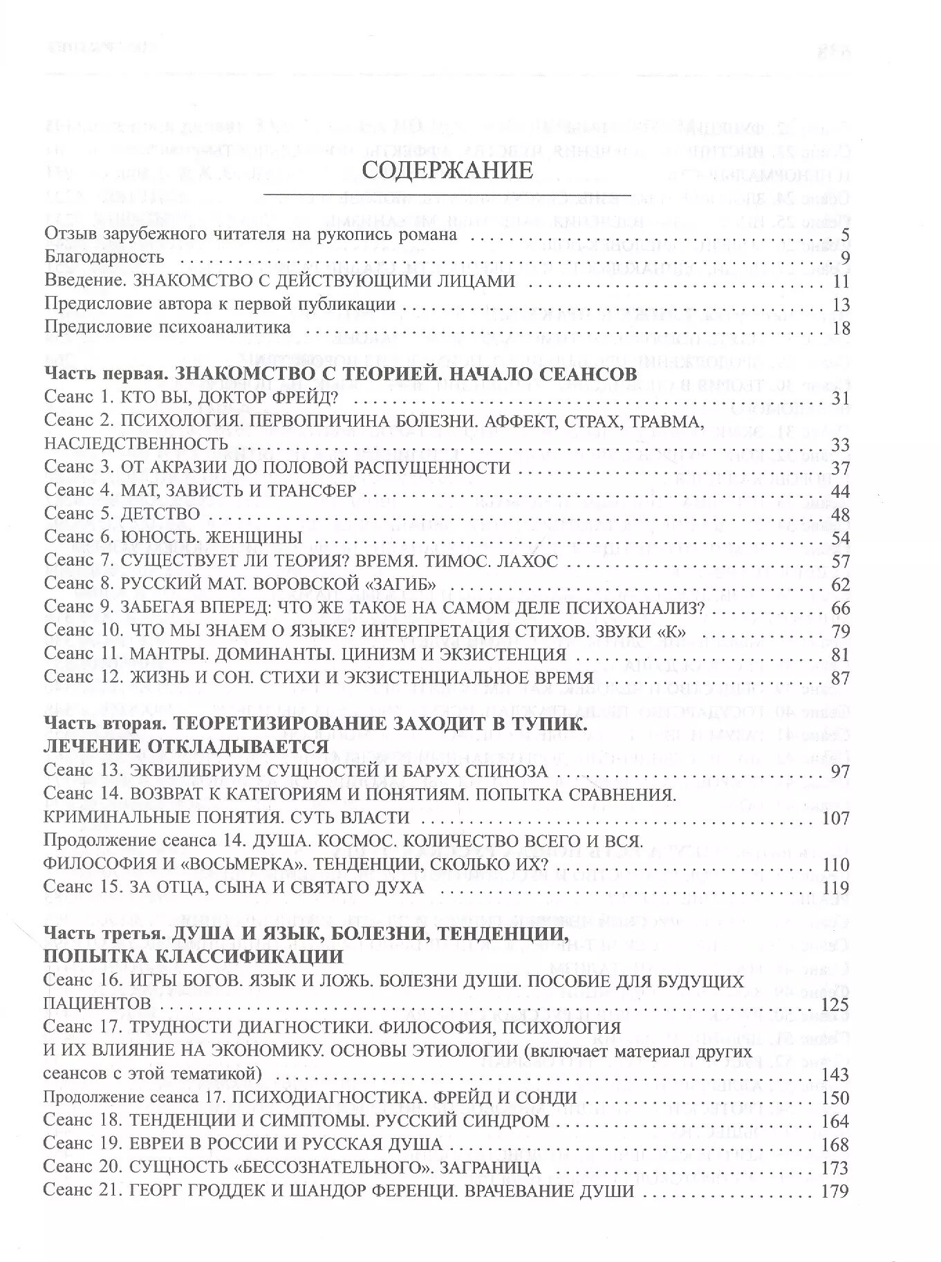 Книга представляет собой публикацию архива записей и психоаналитических сеансов двух реальных, но анонимных персонажей: блестяще образованного и успешного русского человека - пациента, страдающего от неумеренного потребления алкоголя, последствий нравственного кризиса и потери смысла существования, и доктора-аналитика со стажем, который применяет и открыто объясняет свои и заимствованные на Западе терапевтические идеи, приемы и методы работы. От Гроддека, Фрейда и Сонди до наших дней.