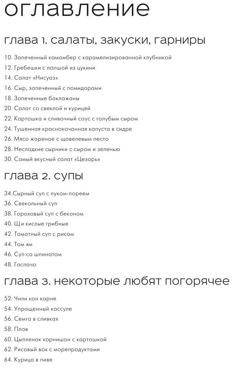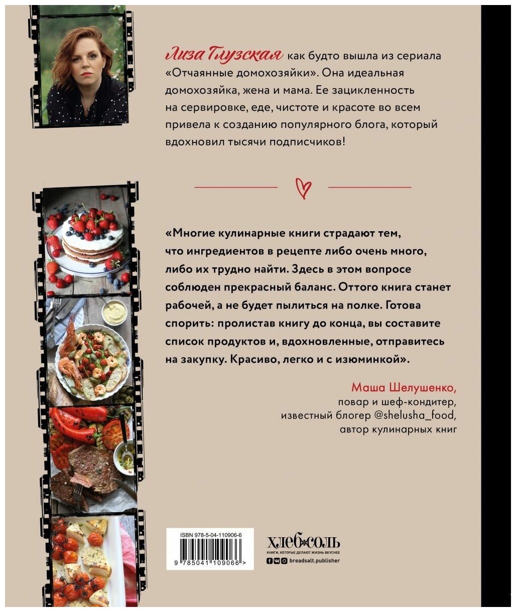 Салаты "Цезарь" и "Нисуаз" с соусами собственного приготовления, французский сырный суп и острый тайский том ям, курица в пиве и папина долма, стейк рибай с овощами гриль, паста болоньезе — что еще вы предпочитаете? Особое внимание — десертам. На просторах интернета тирамису по рецепту Глузской уже успели назвать "приворотным". И автор частенько получает от поклонниц письма с благодарностью за спасенную с помощью вкуснейших ужинов семью. Да, вы правильно поняли, это книга для тех, кто любит своих близких и умеет экономить, не отказывая себе в удовольствиях.