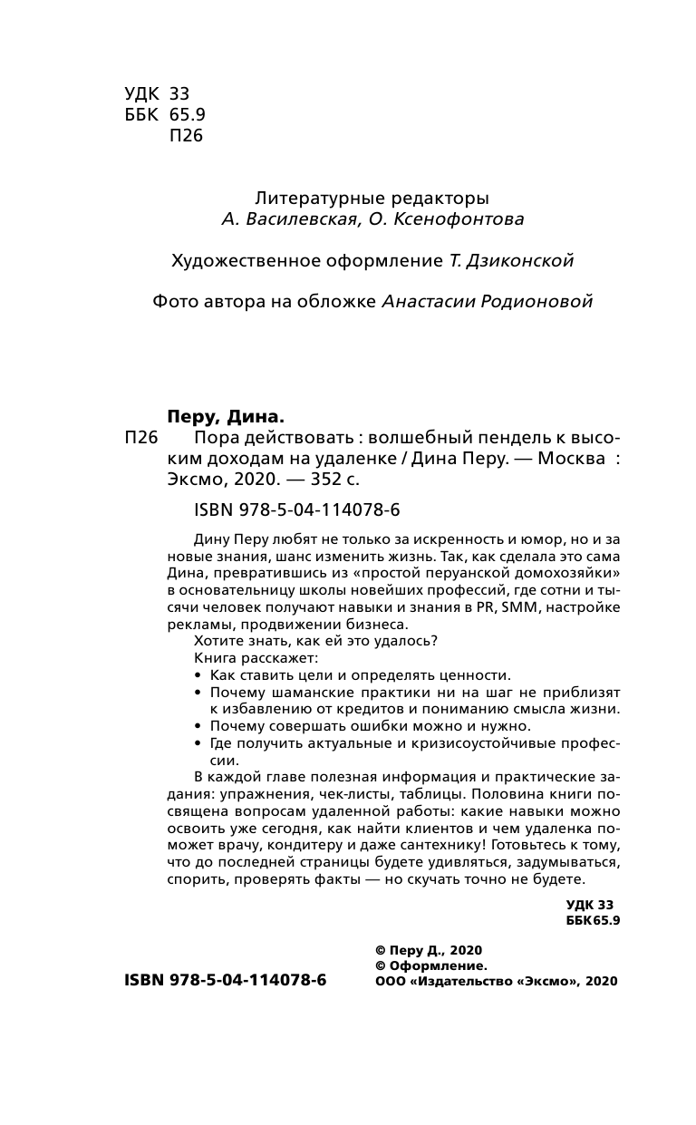 Пора действовать. Волшебный пендель к высоким доходам на удаленке (Дина Перу); Эксмо, 2020